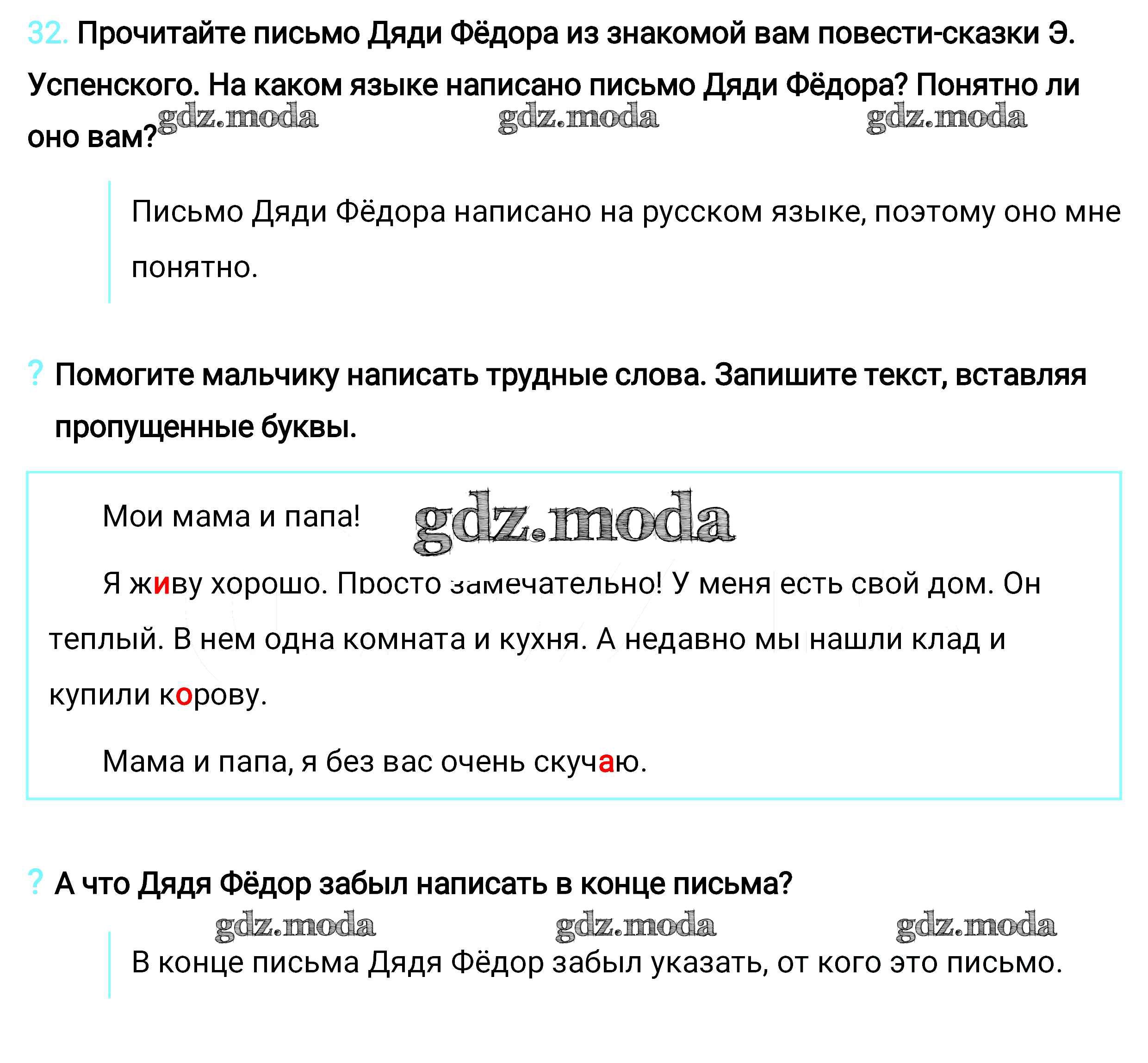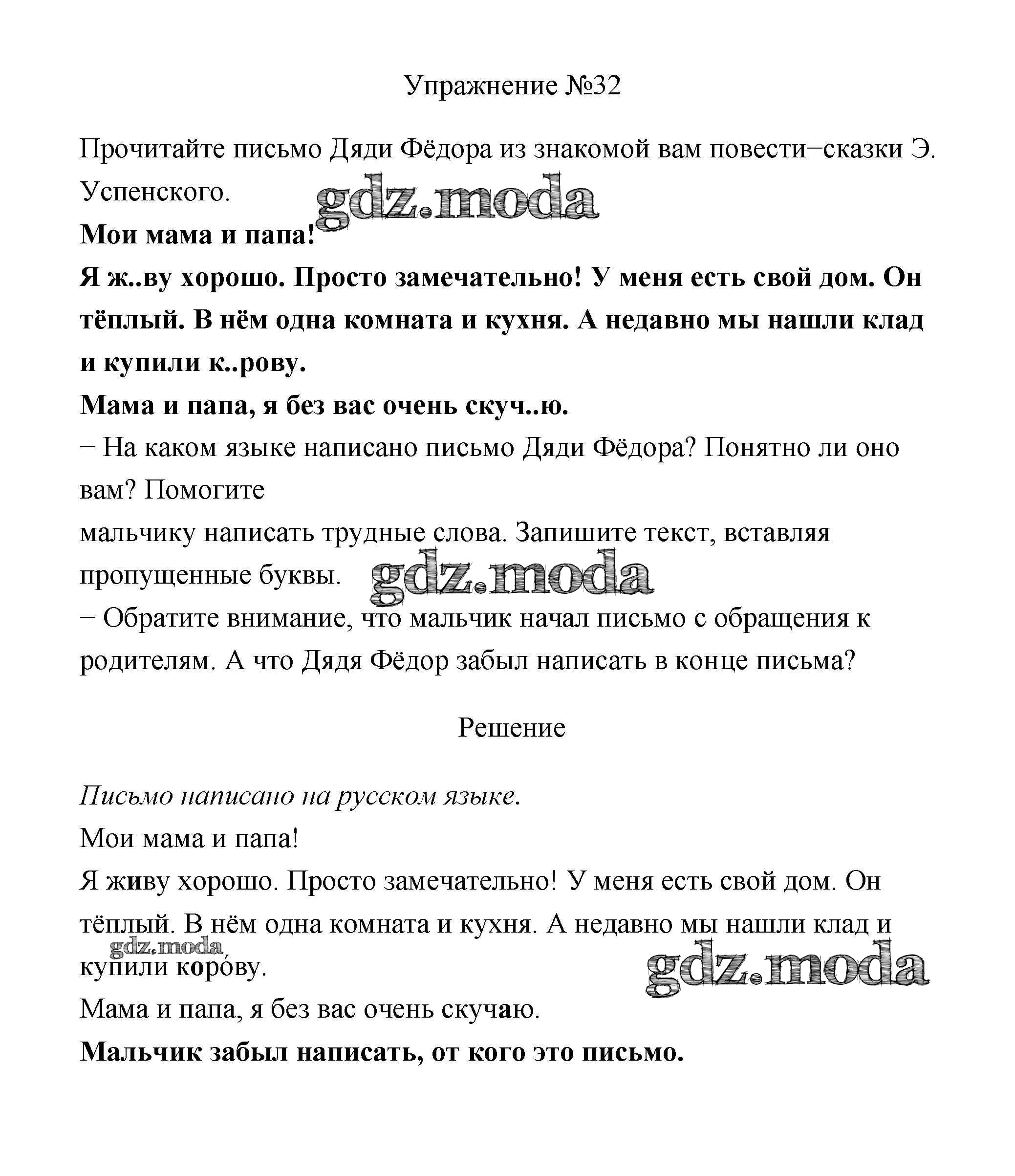 ОТВЕТ на задание № 32 Учебник по Русскому языку 2 класс Климанова Перспектива