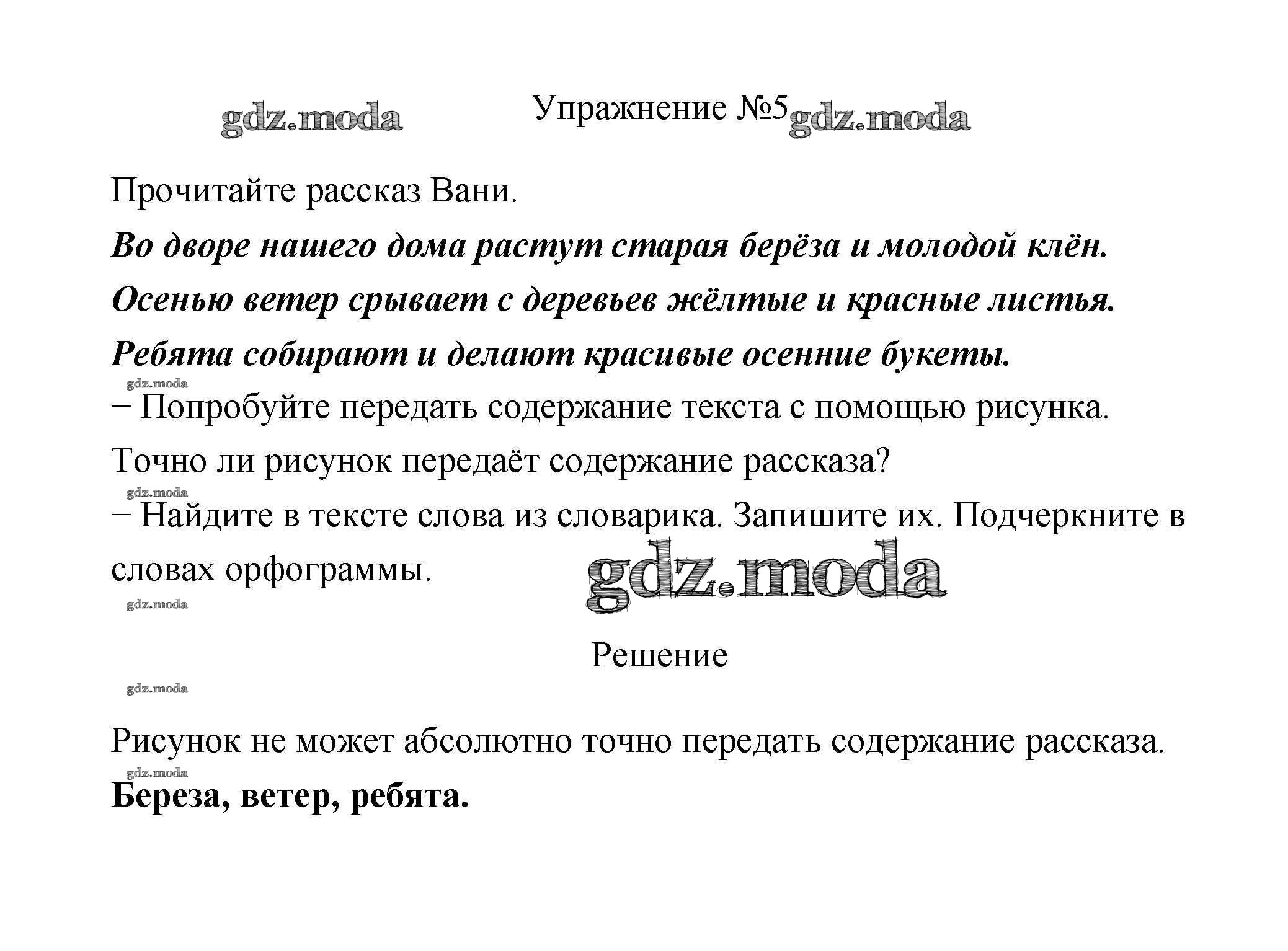 ОТВЕТ на задание № 5 Учебник по Русскому языку 2 класс Климанова Перспектива