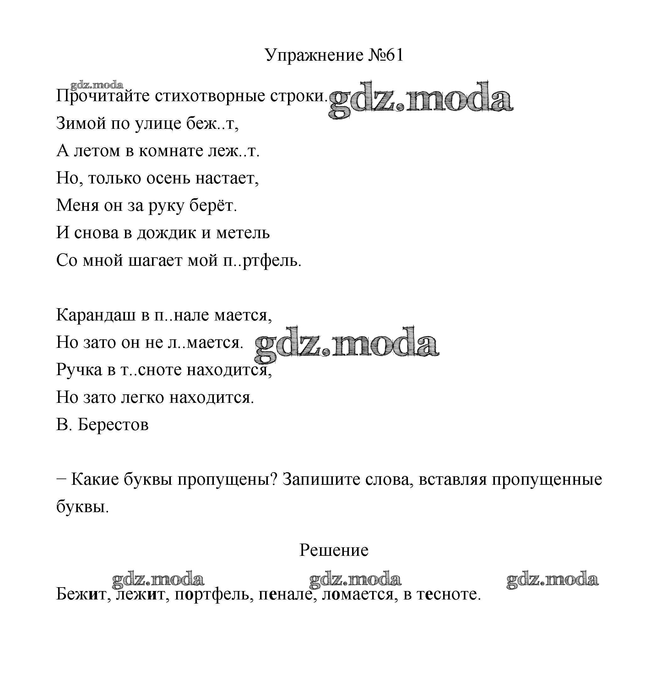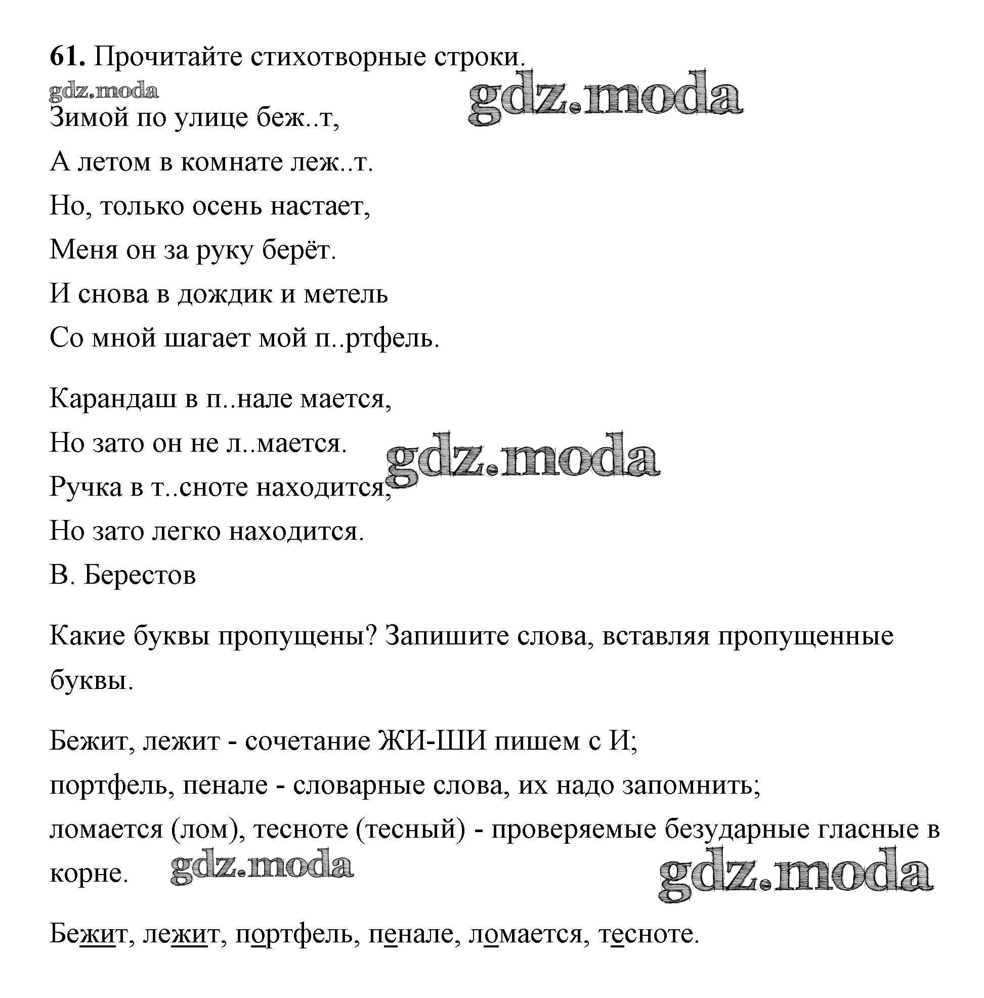 ОТВЕТ на задание № 61 Учебник по Русскому языку 2 класс Климанова Перспектива