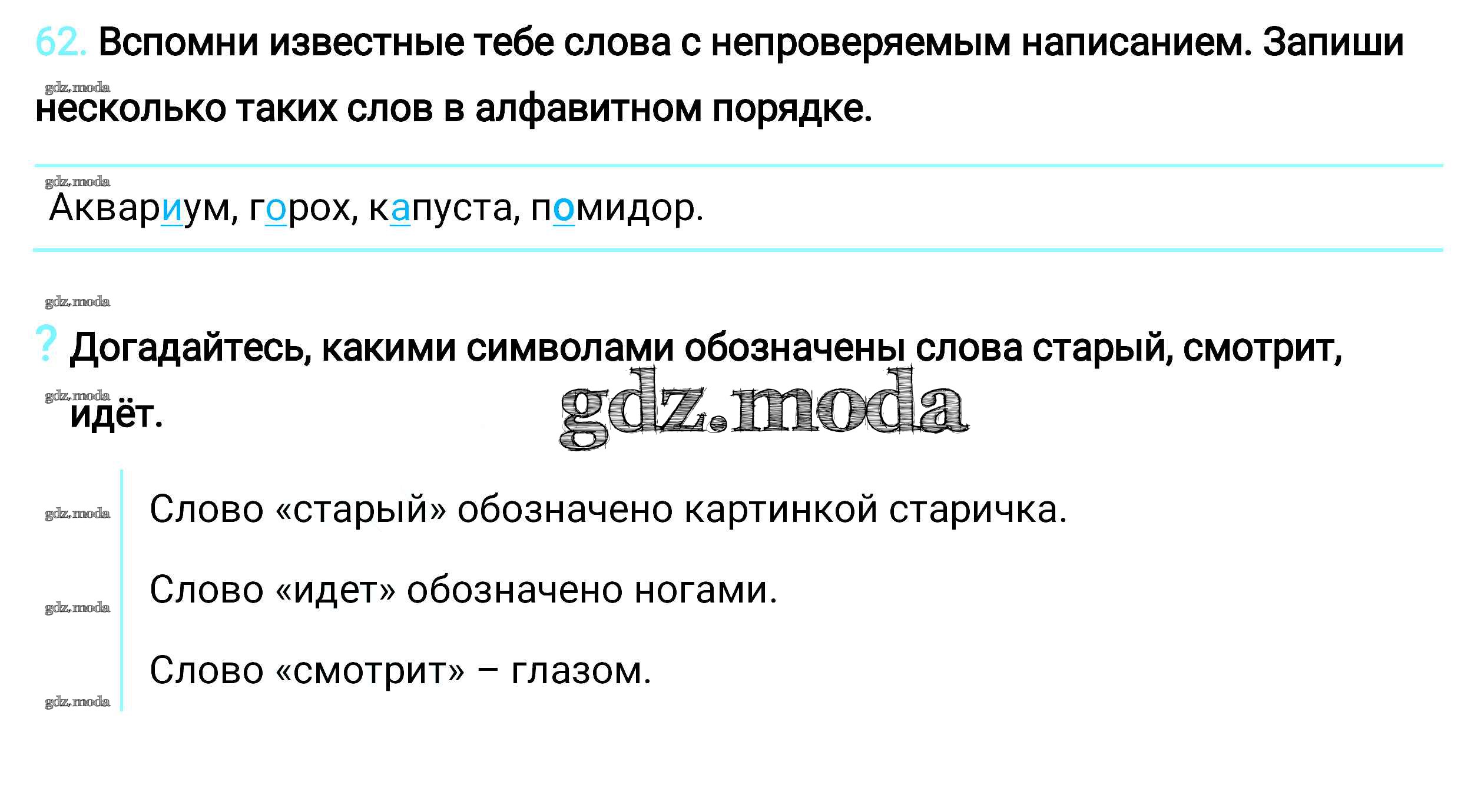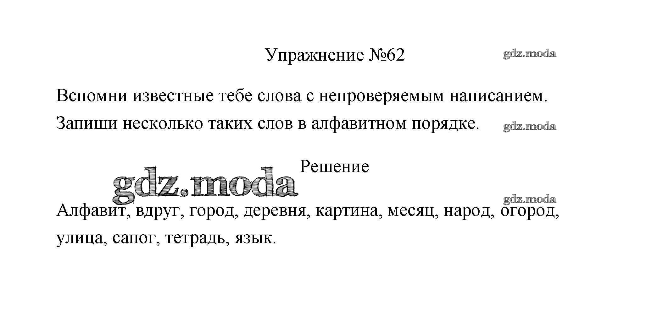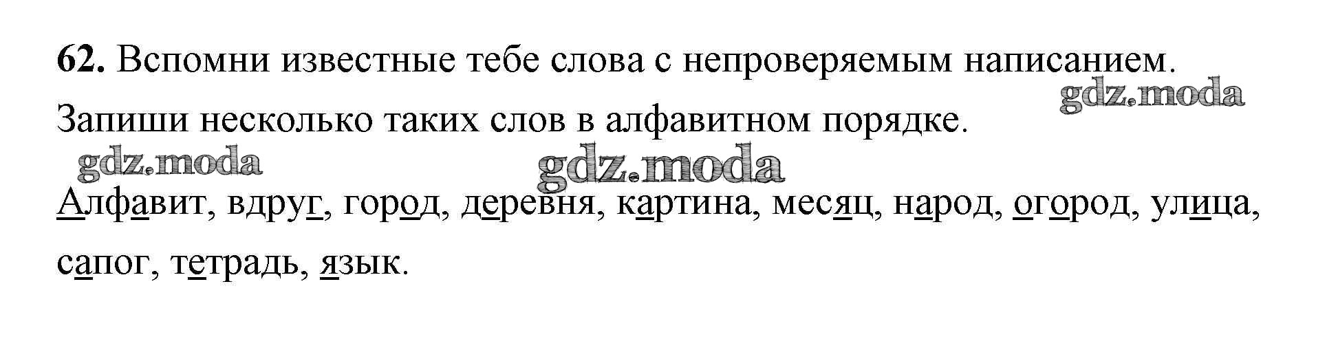 ОТВЕТ на задание № 62 Учебник по Русскому языку 2 класс Климанова Перспектива