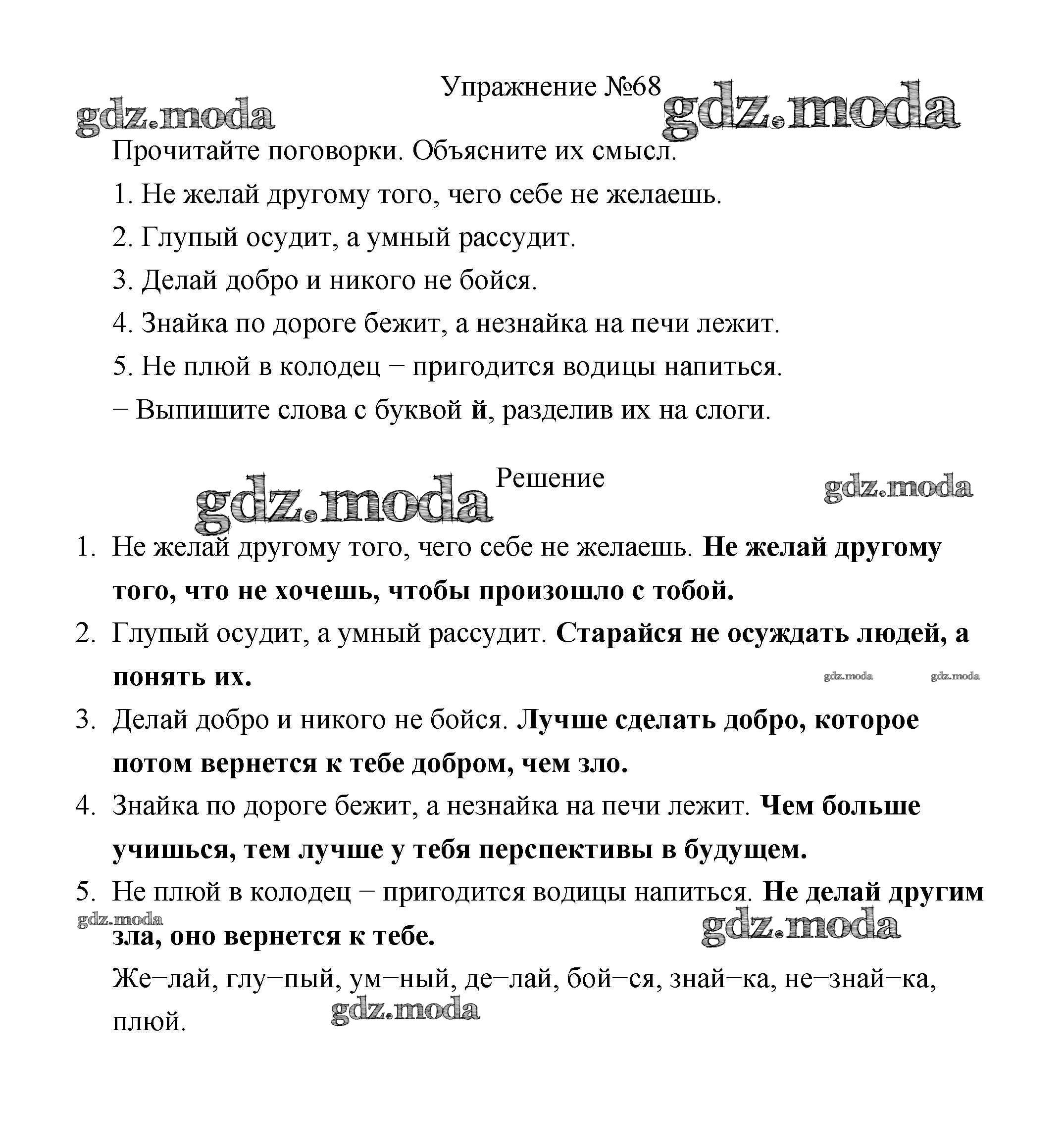 ОТВЕТ на задание № 68 Учебник по Русскому языку 2 класс Климанова Перспектива
