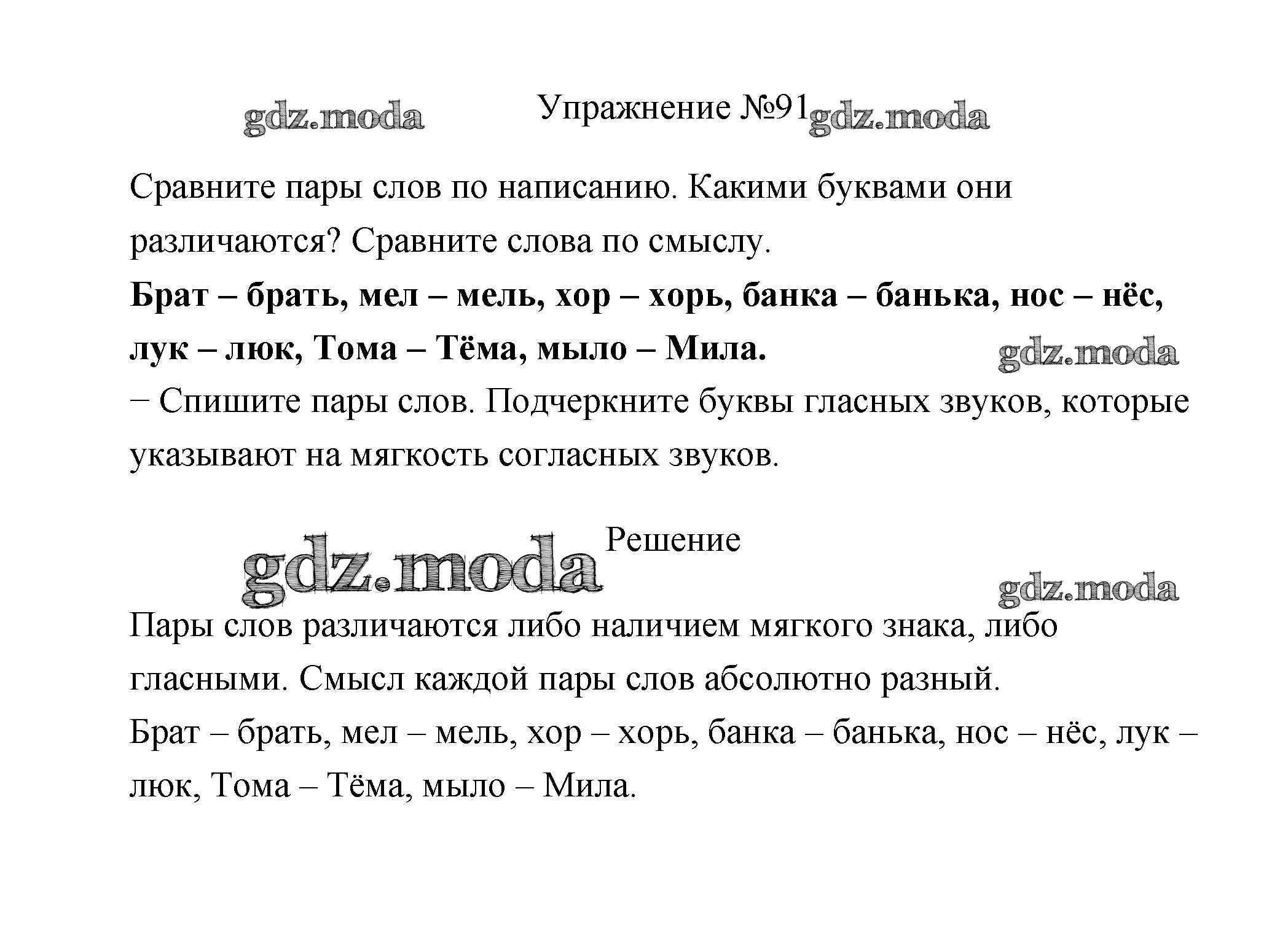 ОТВЕТ на задание № 91 Учебник по Русскому языку 2 класс Климанова Перспектива