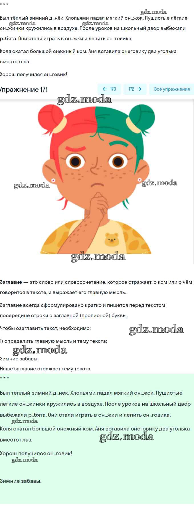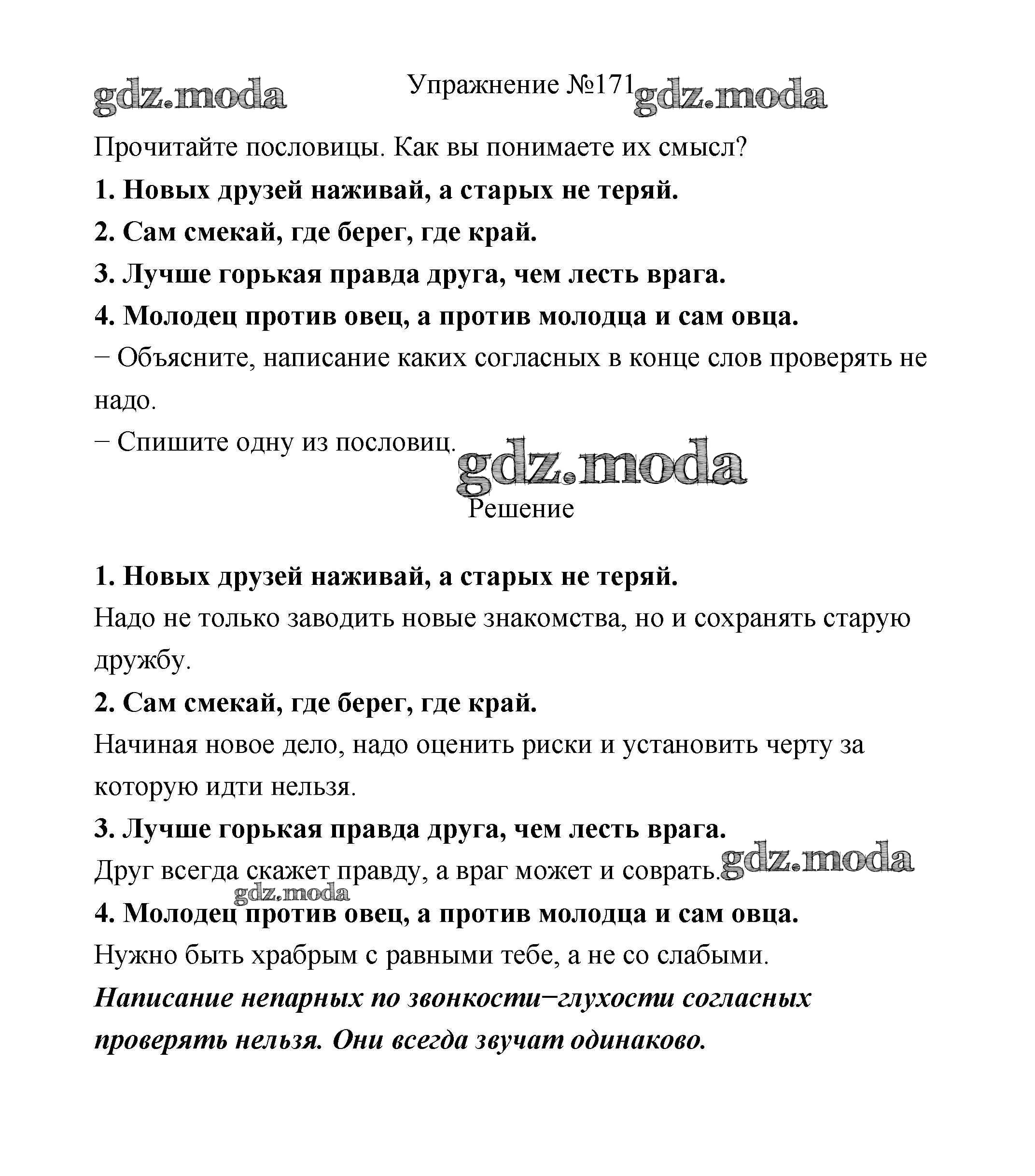 ОТВЕТ на задание № 171 Учебник по Русскому языку 2 класс Климанова Перспектива