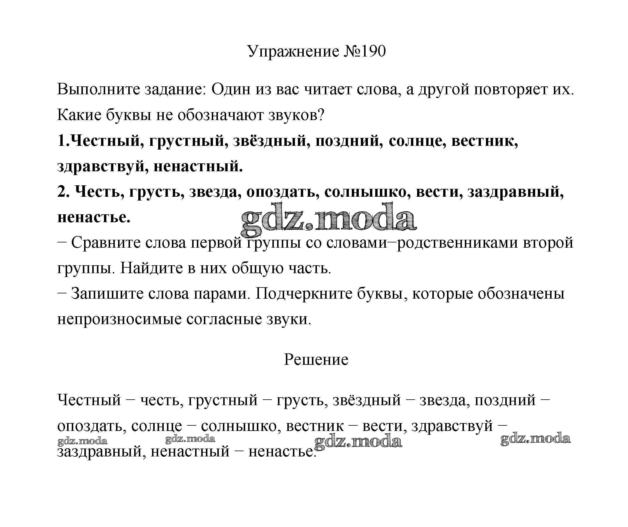 ОТВЕТ на задание № 190 Учебник по Русскому языку 2 класс Климанова Перспектива
