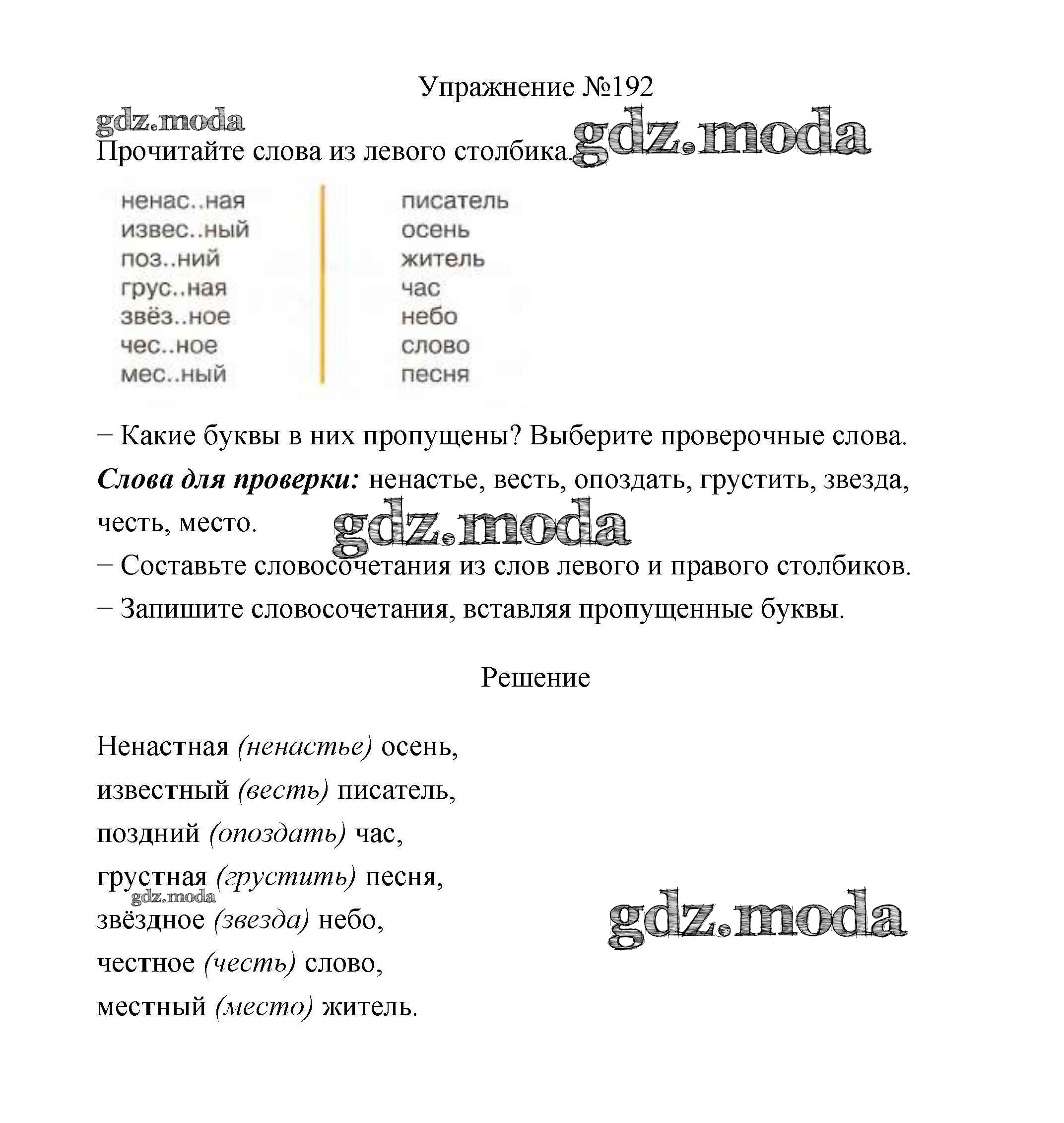 ОТВЕТ на задание № 192 Учебник по Русскому языку 2 класс Климанова Перспектива