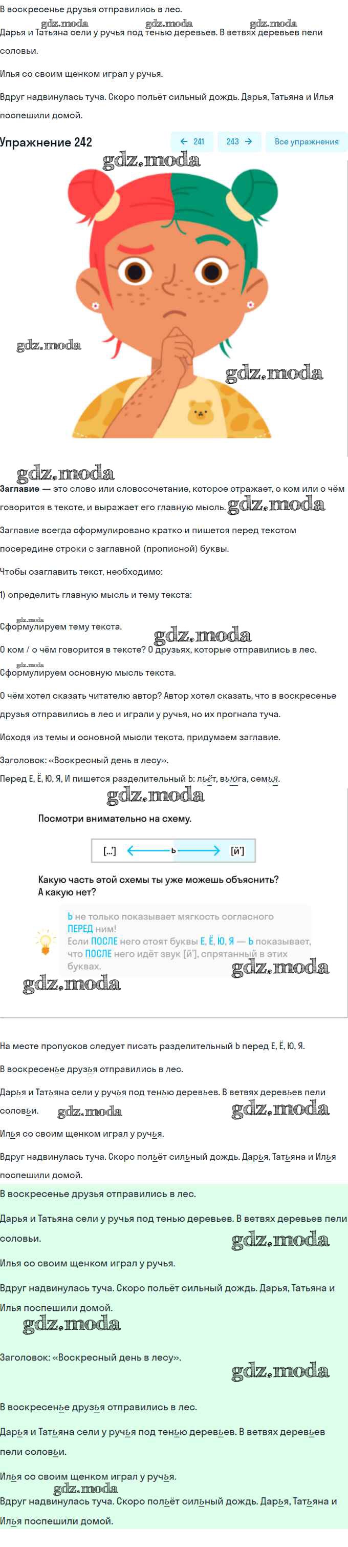ГДЗ решение к заданию № 242 Русский язык 2 класс Климанова Просвещение, Просвещение 2015, 2020 Часть 1, Часть 2 ФГОС бесплатно на гдз.мода!