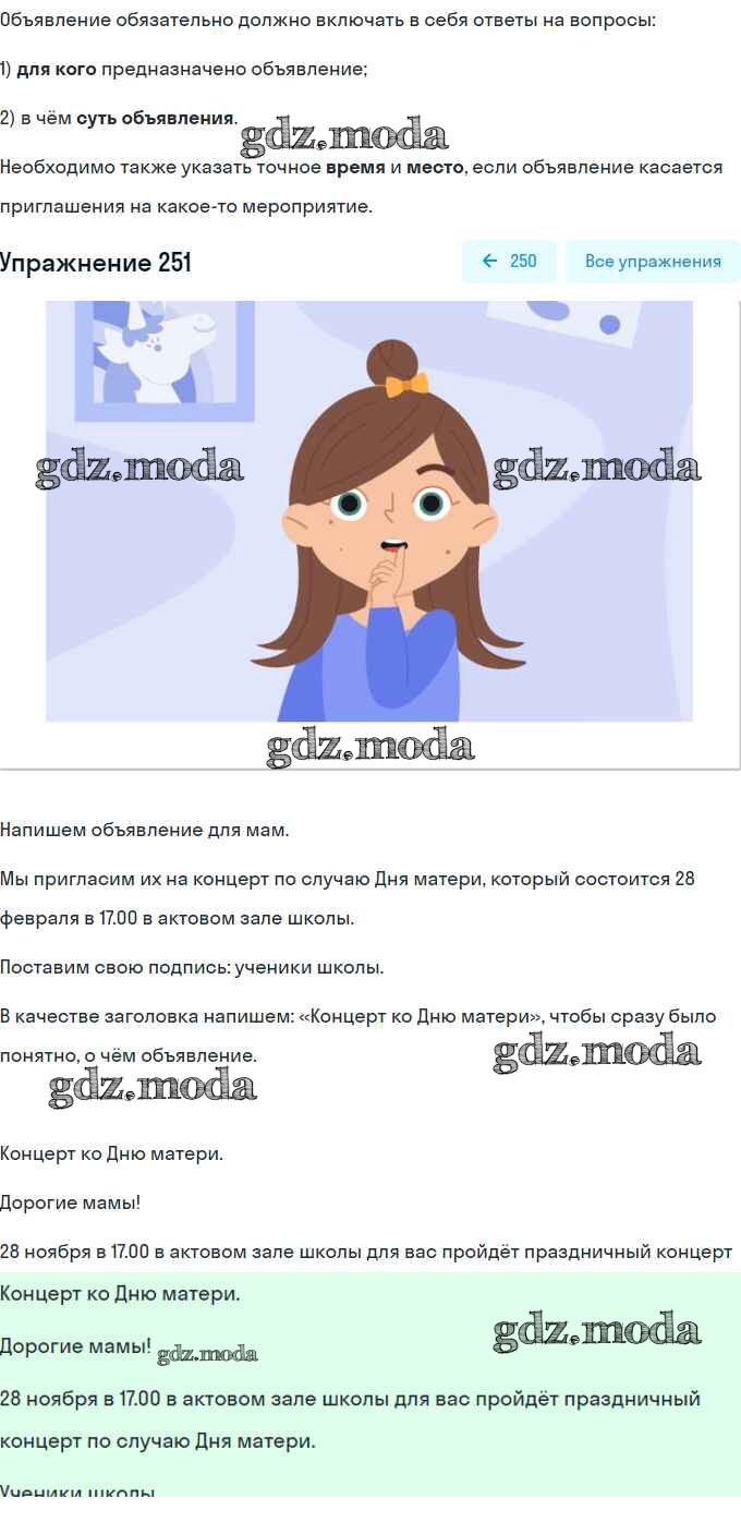 ГДЗ решение к заданию № 251 Русский язык 2 класс Климанова Просвещение, Просвещение 2015, 2020 Часть 1, Часть 2 ФГОС бесплатно на гдз.мода!