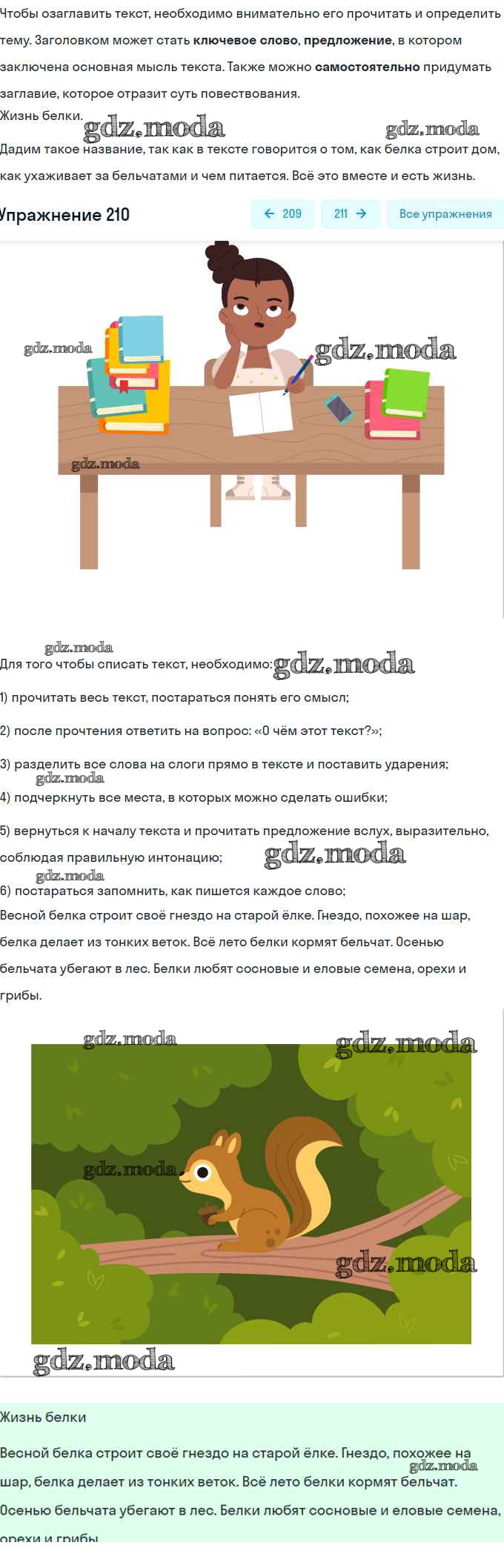 ГДЗ решение к заданию № 210 Русский язык 2 класс Климанова Просвещение, Просвещение 2015, 2020 Часть 1, Часть 2 ФГОС бесплатно на гдз.мода!