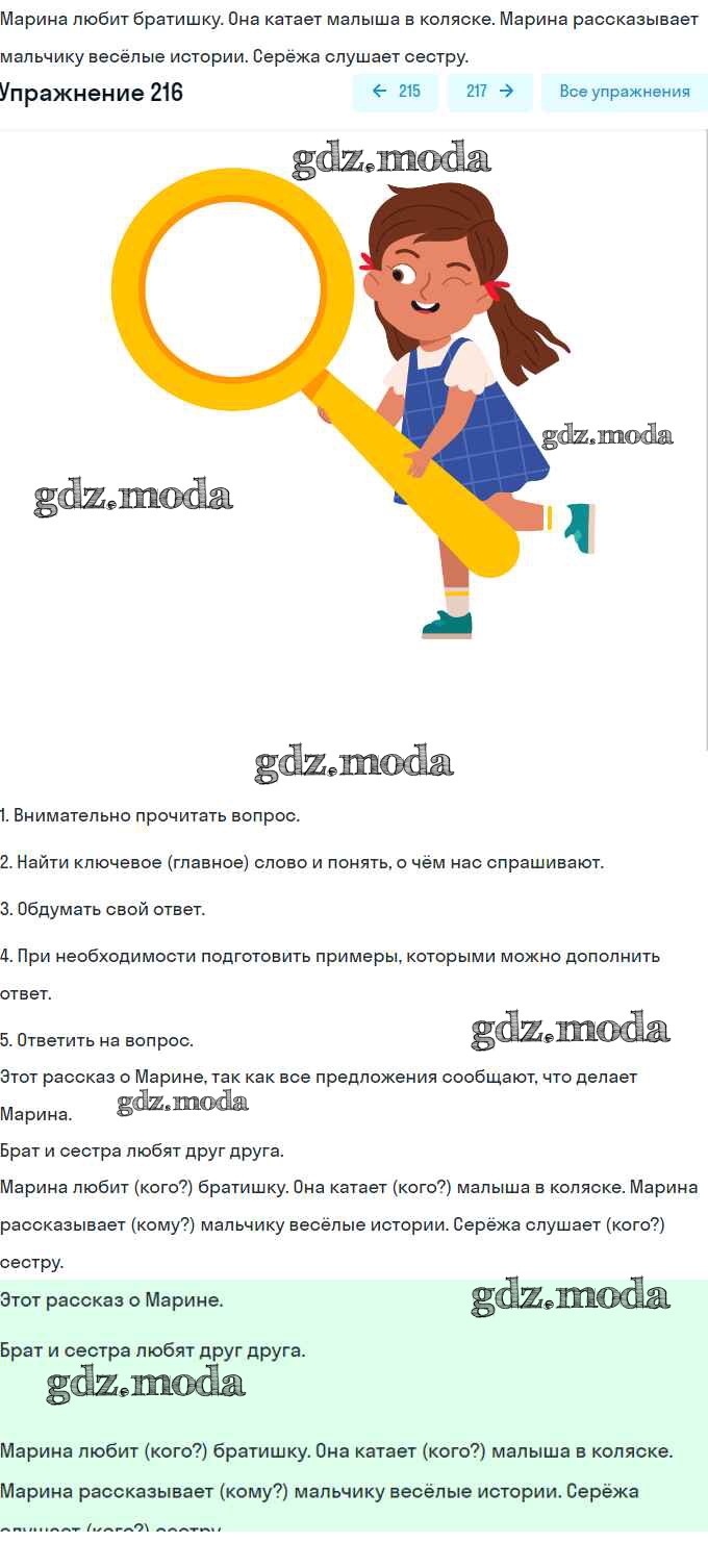 ГДЗ решение к заданию № 216 Русский язык 2 класс Климанова Просвещение, Просвещение 2015, 2020 Часть 1, Часть 2 ФГОС бесплатно на гдз.мода!