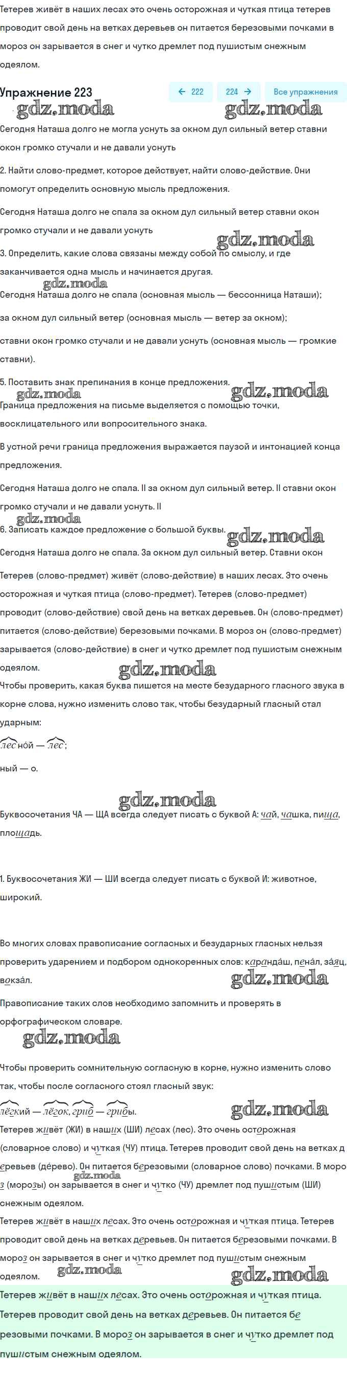 ГДЗ решение к заданию № 223 Русский язык 2 класс Климанова Просвещение, Просвещение 2015, 2020 Часть 1, Часть 2 ФГОС бесплатно на гдз.мода!