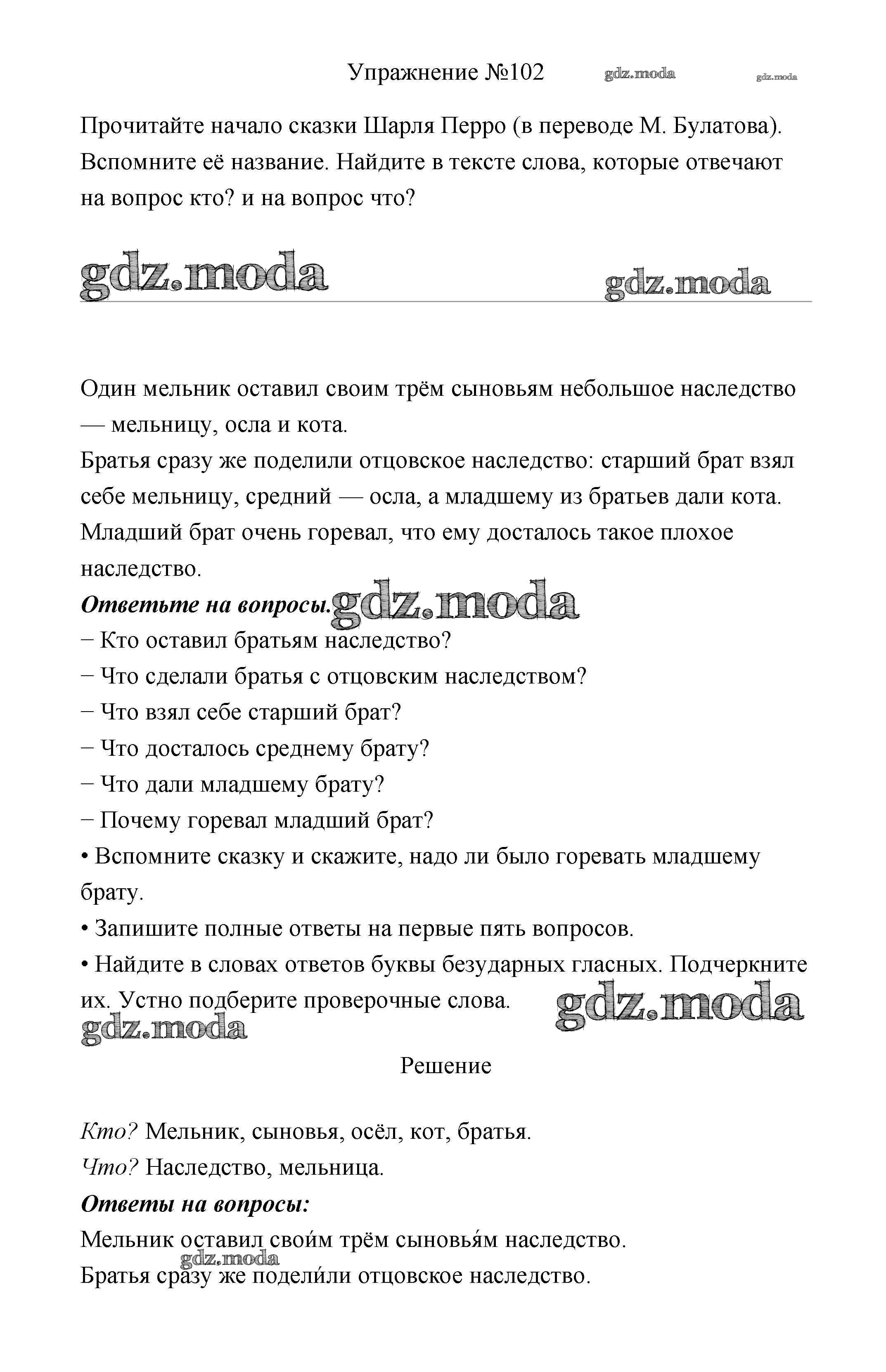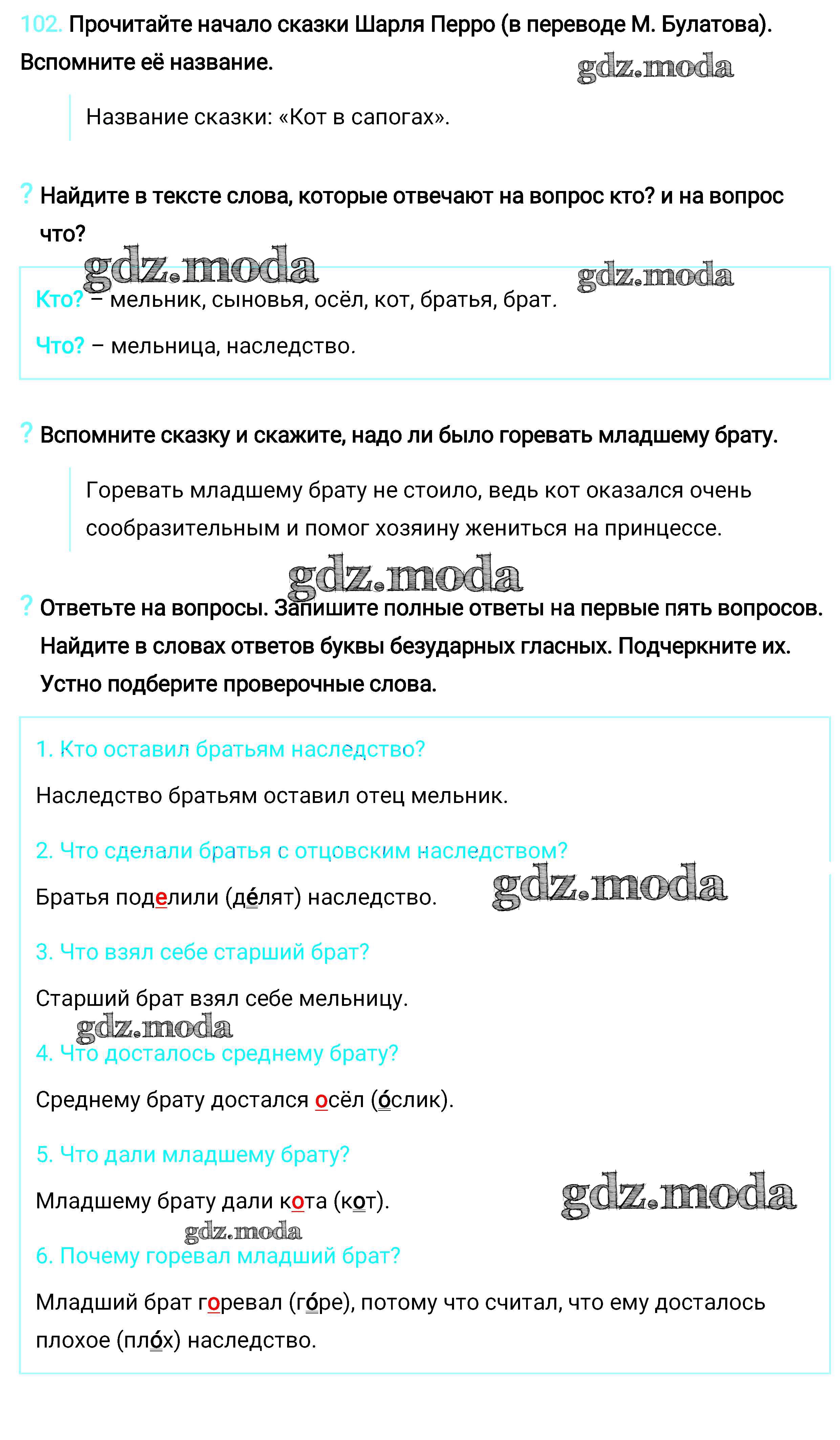 ОТВЕТ на задание № 102 Учебник по Русскому языку 2 класс Климанова Перспектива