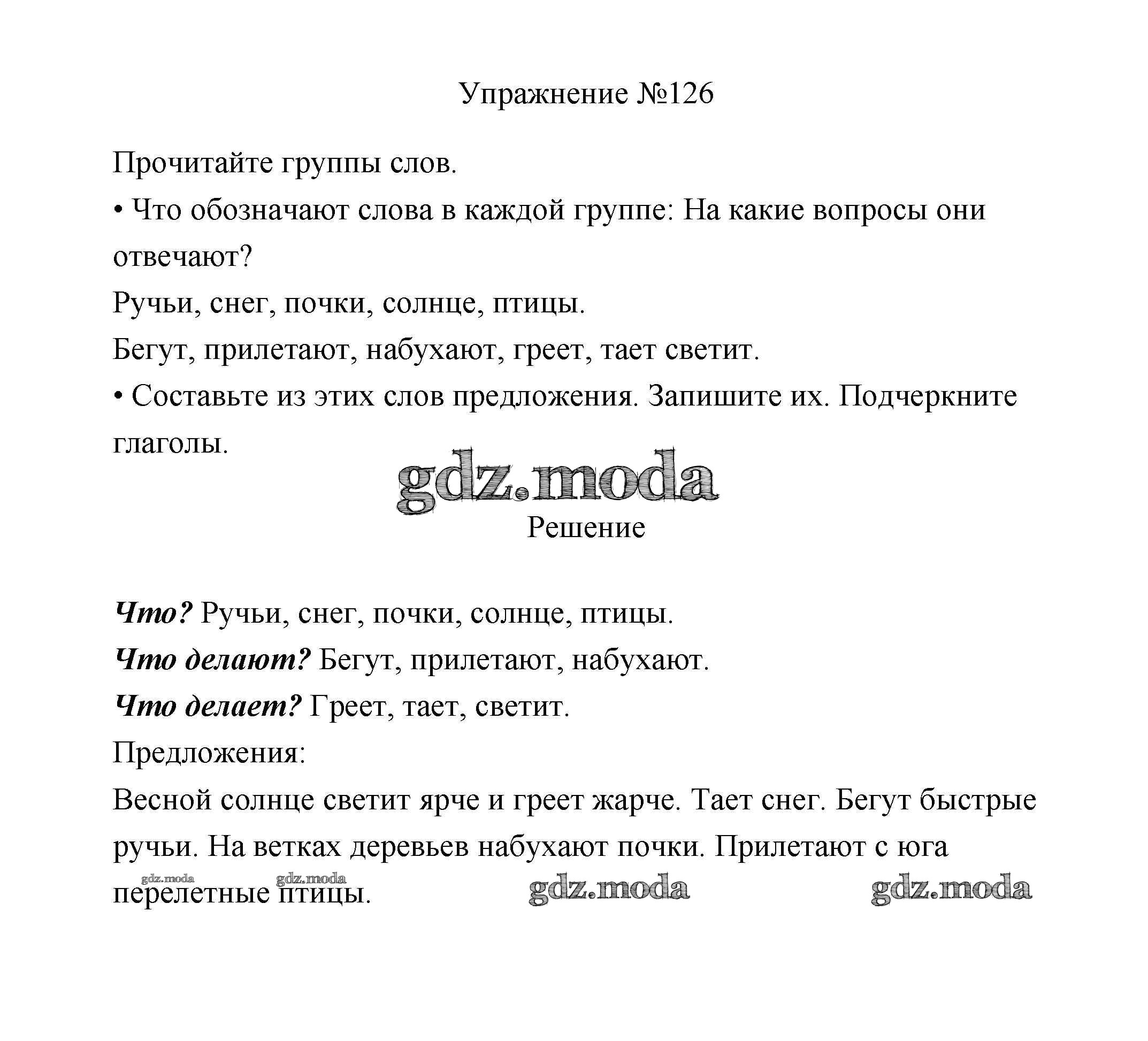 ОТВЕТ на задание № 126 Учебник по Русскому языку 2 класс Климанова Перспектива