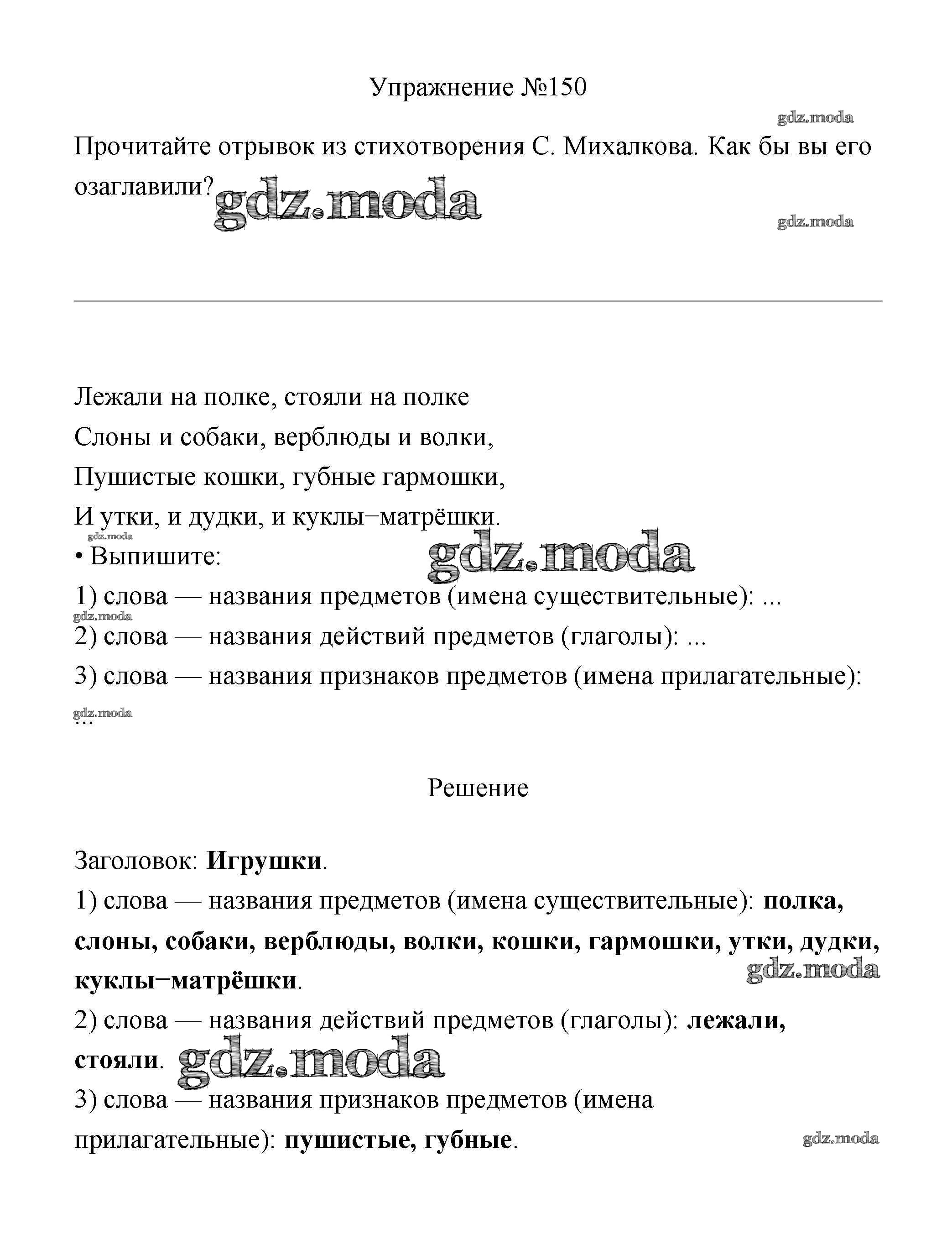ОТВЕТ на задание № 150 Учебник по Русскому языку 2 класс Климанова Перспектива