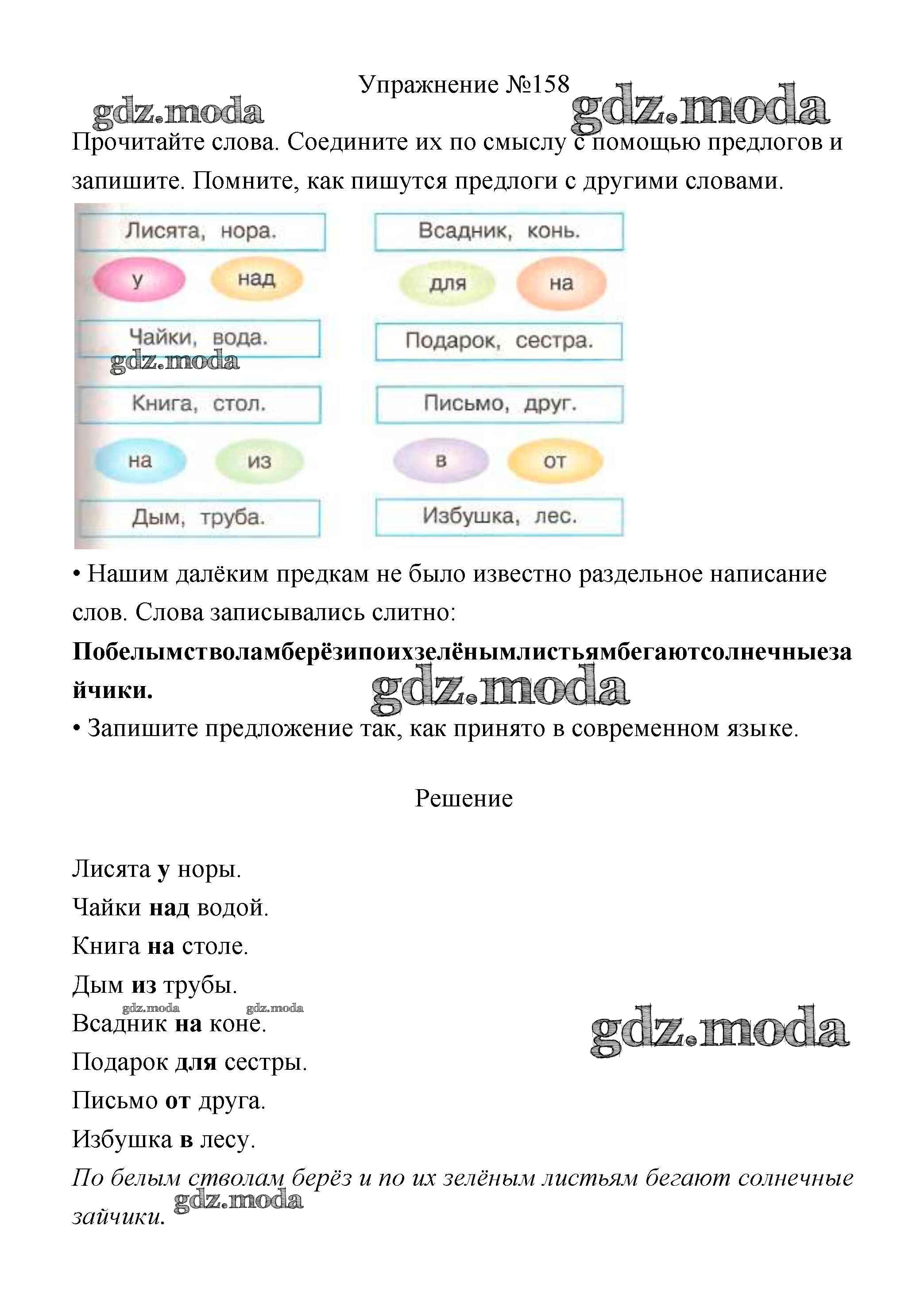 ОТВЕТ на задание № 158 Учебник по Русскому языку 2 класс Климанова Перспектива