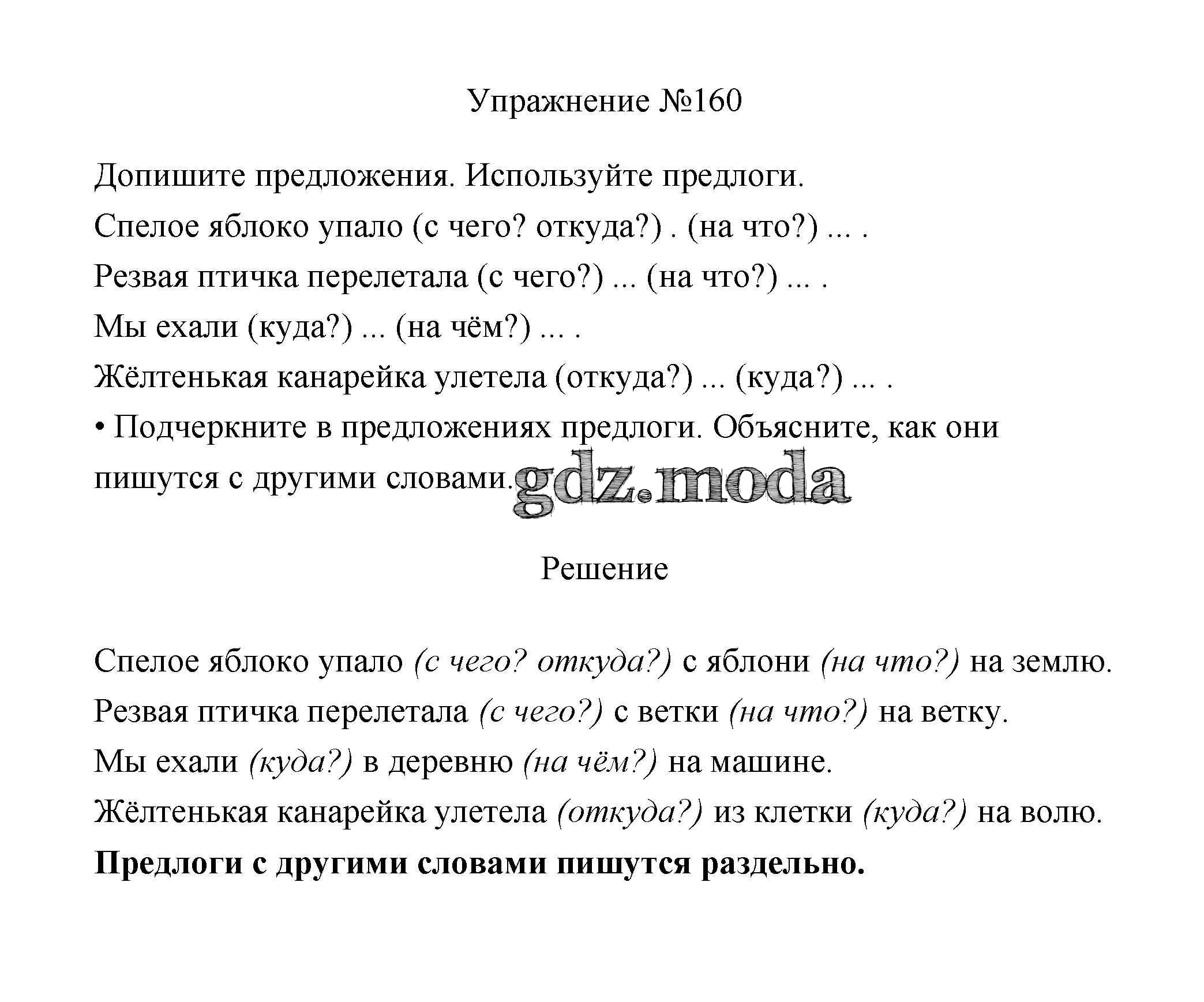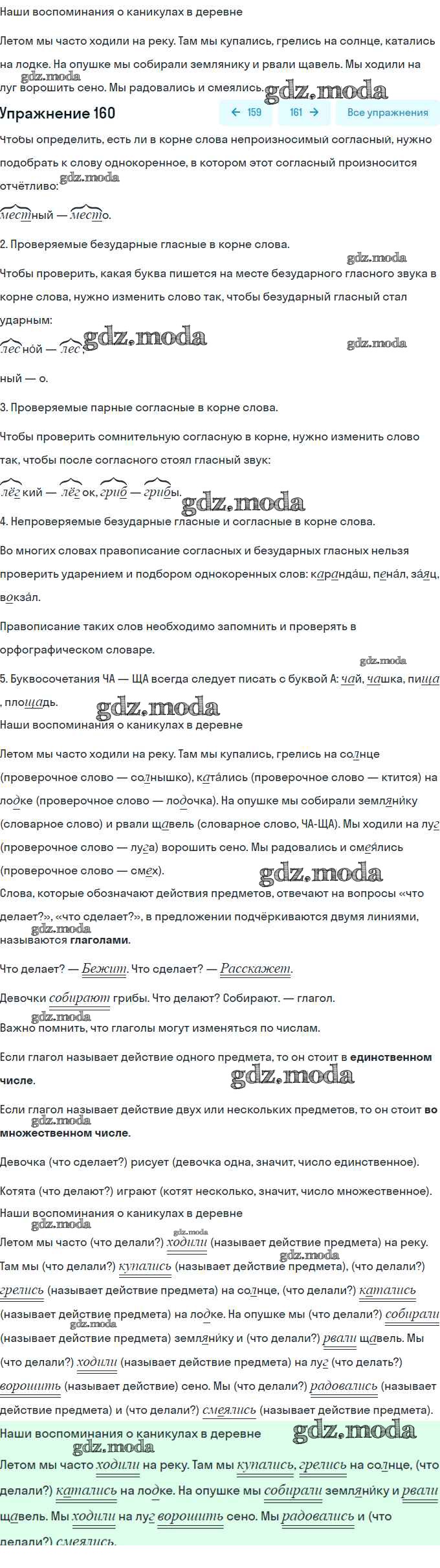 ОТВЕТ на задание № 160 Учебник по Русскому языку 2 класс Климанова Перспектива