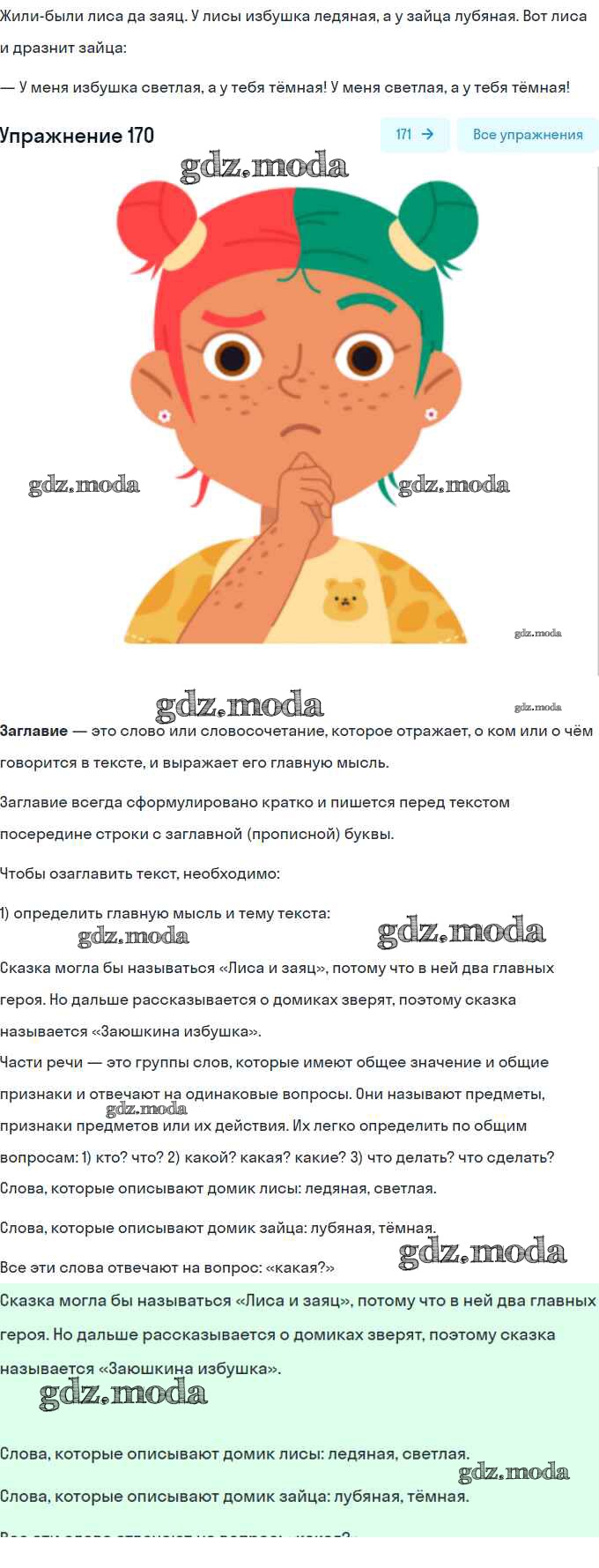 ОТВЕТ на задание № 170 Учебник по Русскому языку 2 класс Климанова Перспектива