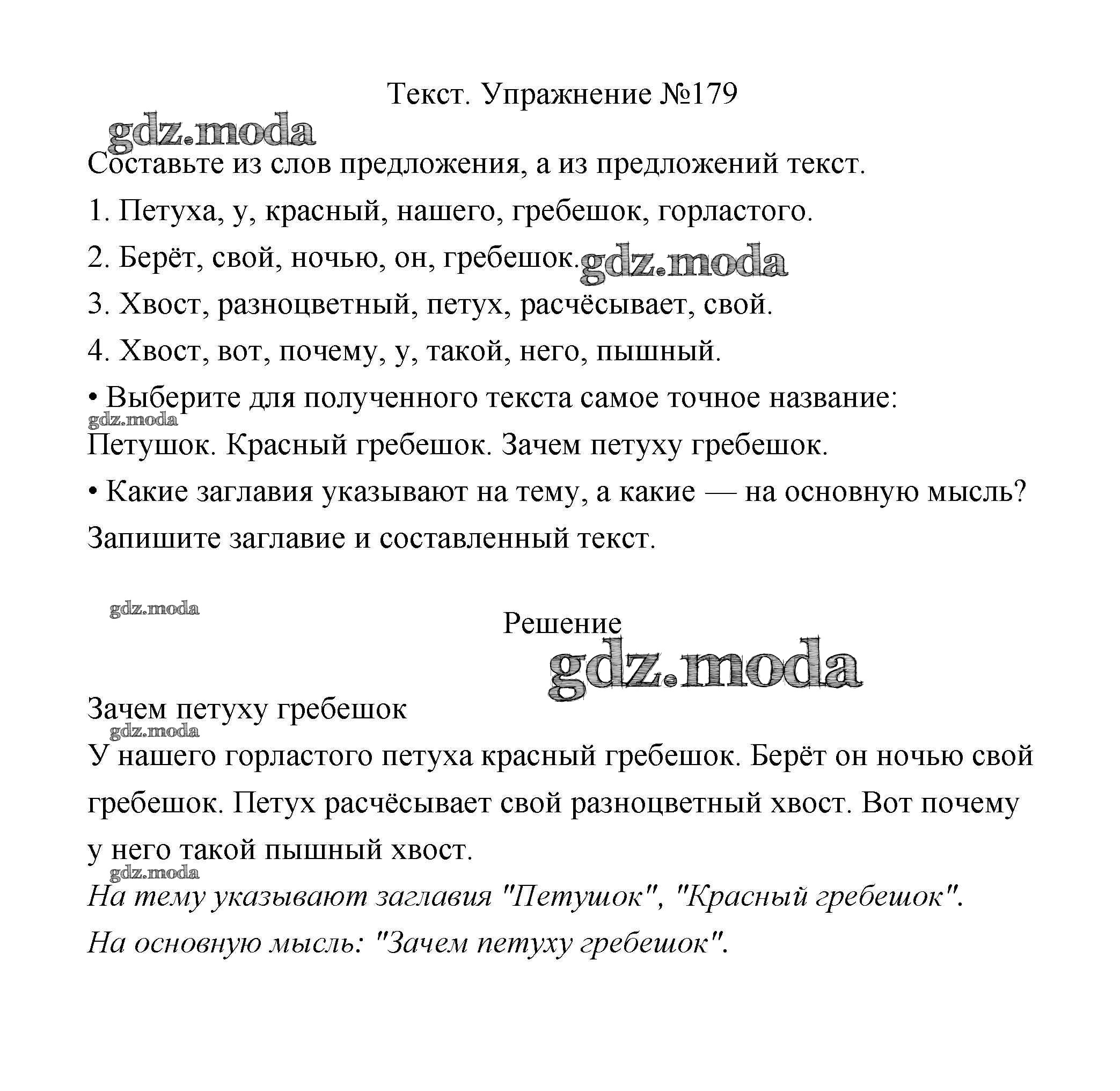 ОТВЕТ на задание № 179 Учебник по Русскому языку 2 класс Климанова Перспектива
