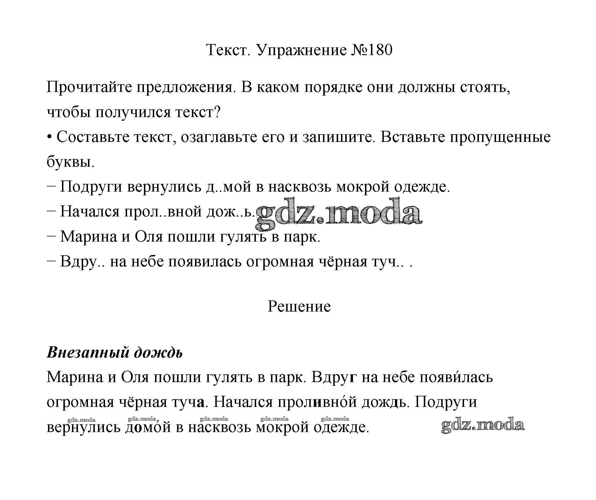 ОТВЕТ на задание № 180 Учебник по Русскому языку 2 класс Климанова Перспектива