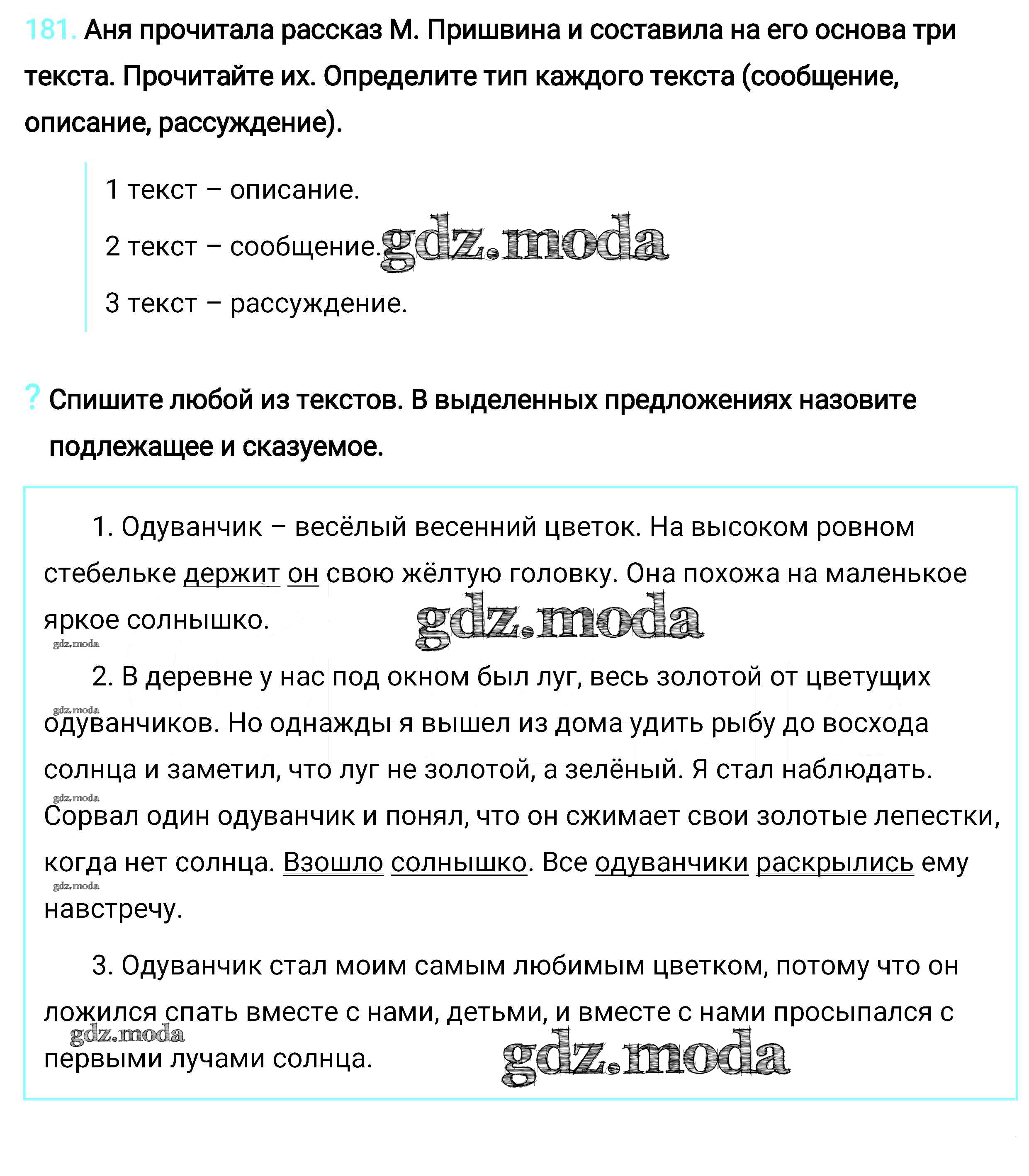 ОТВЕТ на задание № 181 Учебник по Русскому языку 2 класс Климанова Перспектива