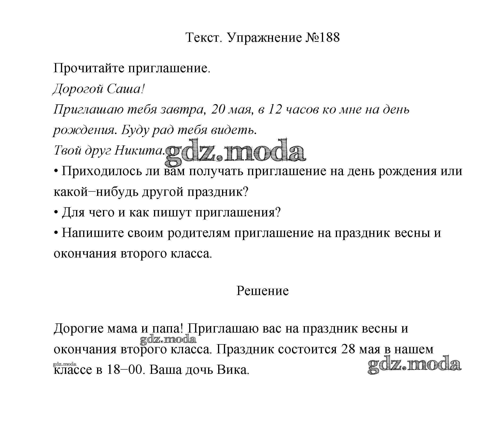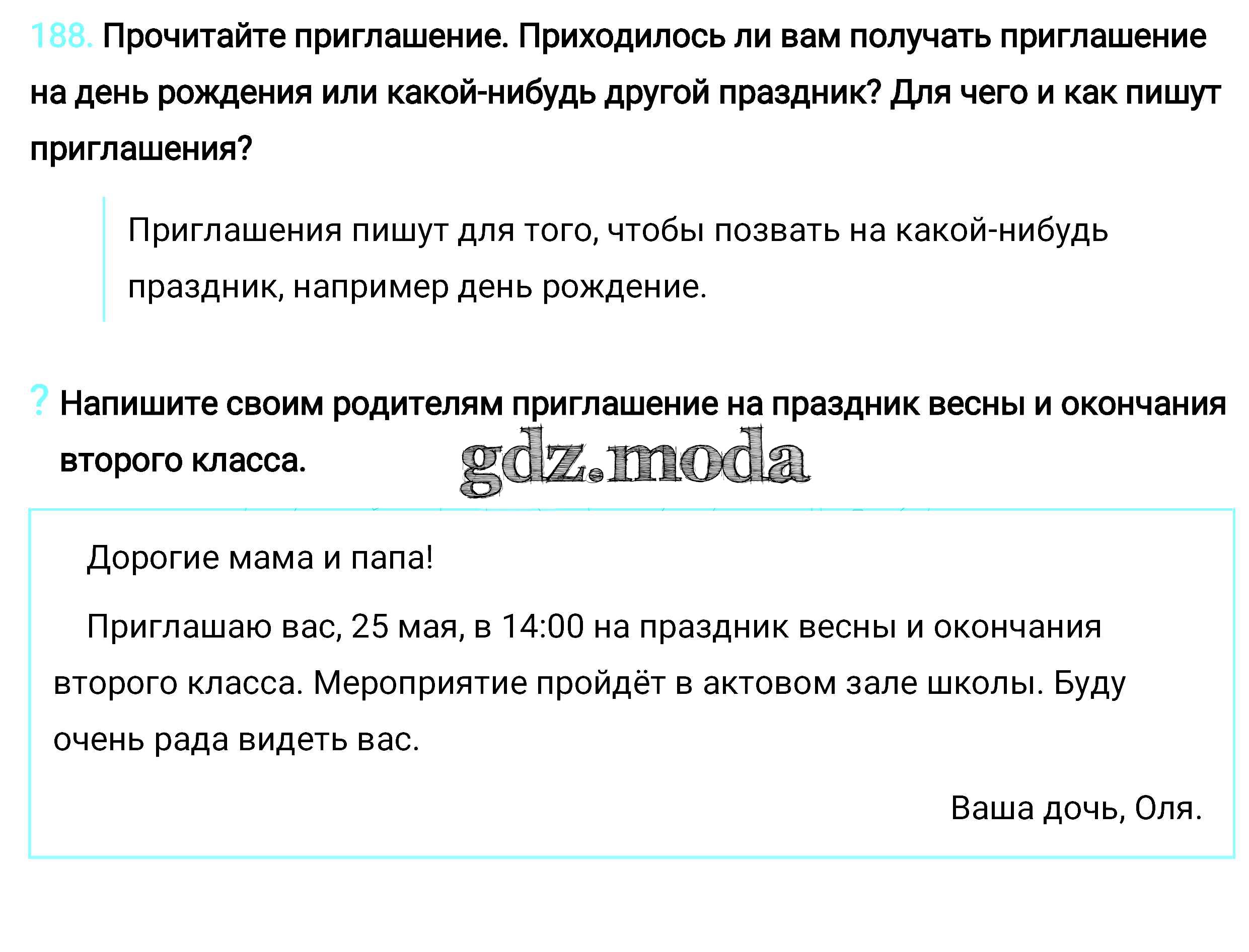 ОТВЕТ на задание № 188 Учебник по Русскому языку 2 класс Климанова Перспектива