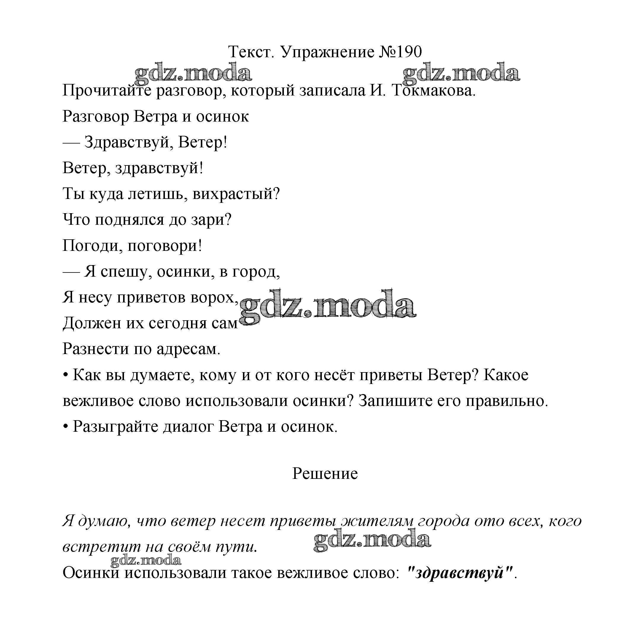 ОТВЕТ на задание № 190 Учебник по Русскому языку 2 класс Климанова Перспектива
