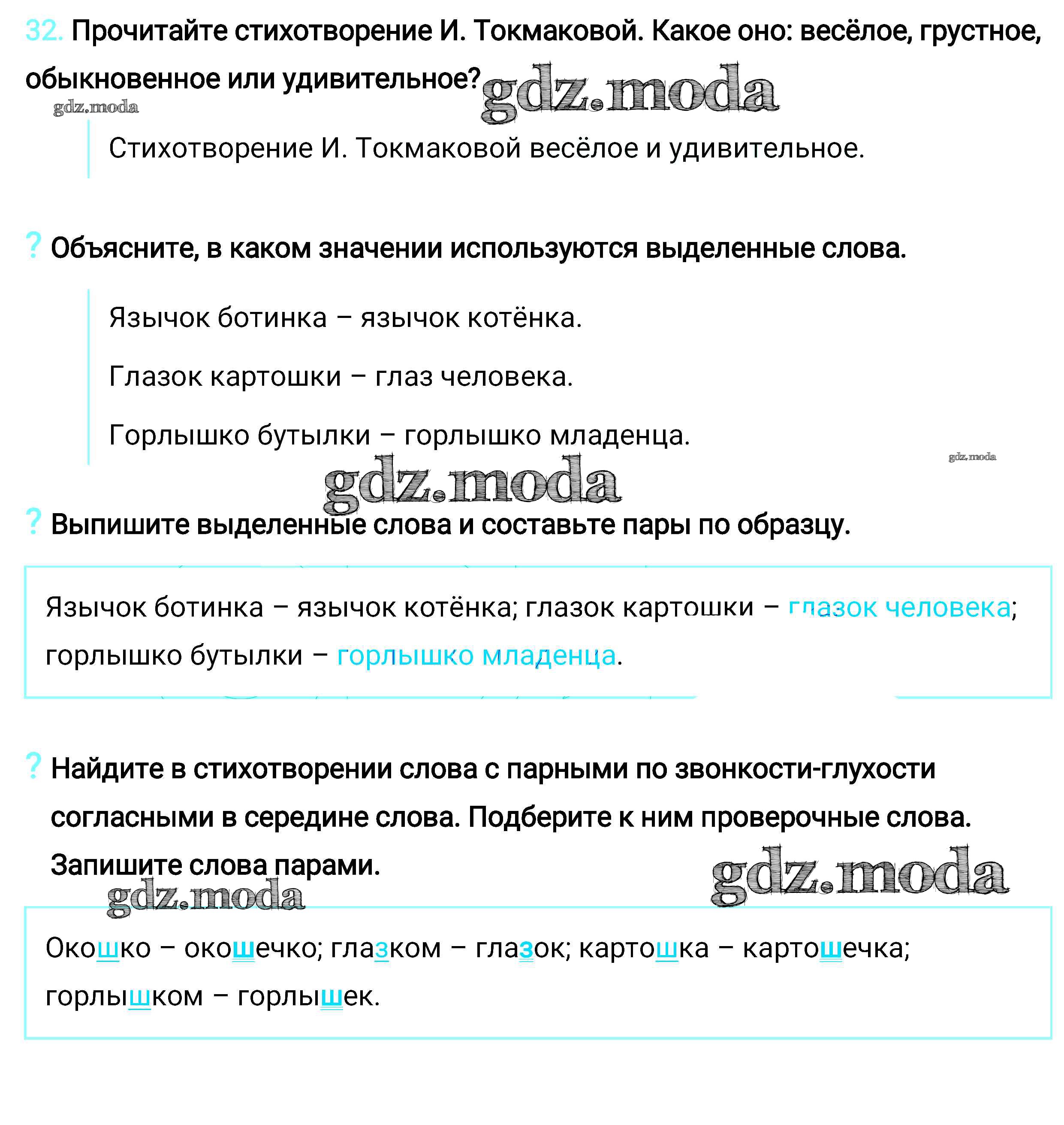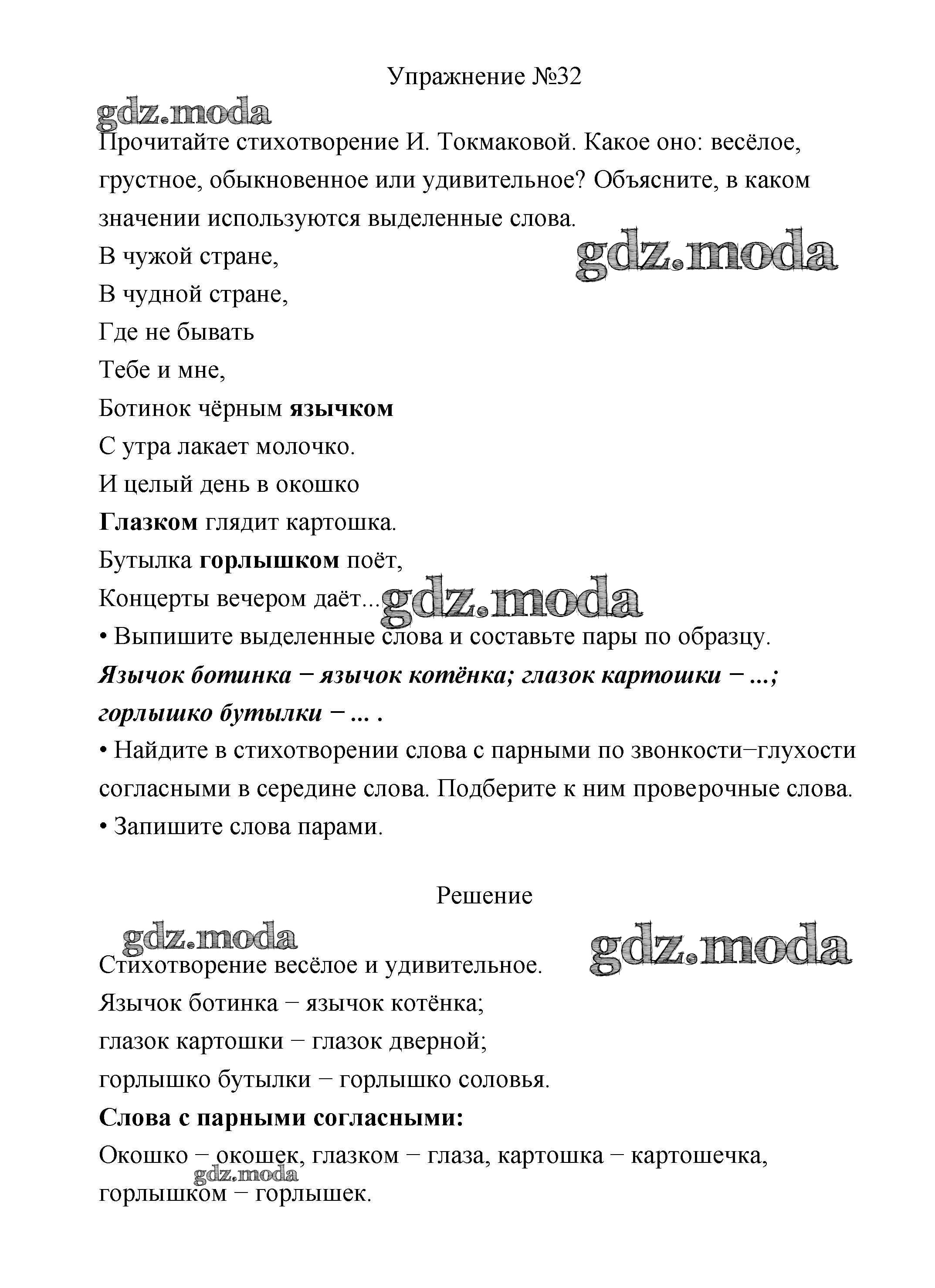 ОТВЕТ на задание № 32 Учебник по Русскому языку 2 класс Климанова Перспектива