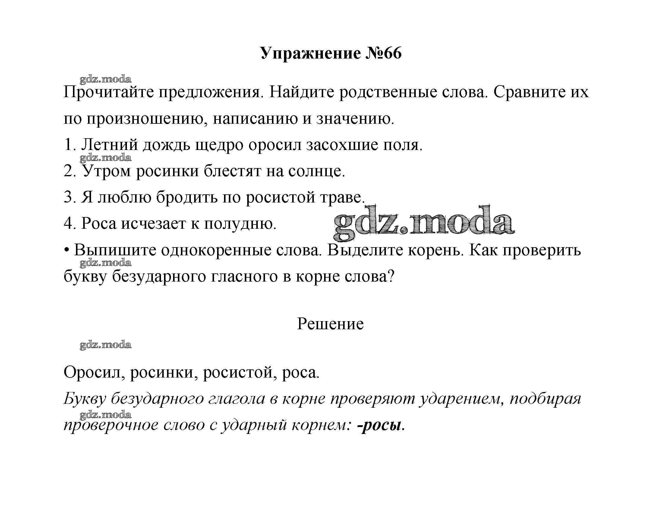 ОТВЕТ на задание № 66 Учебник по Русскому языку 2 класс Климанова Перспектива