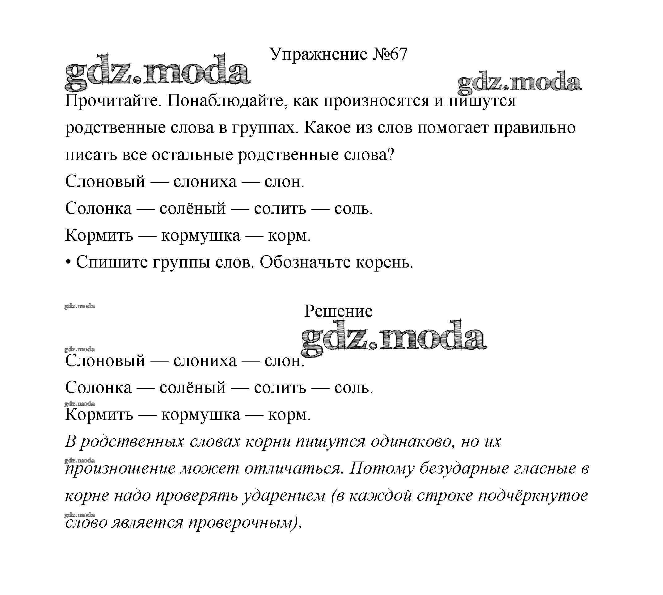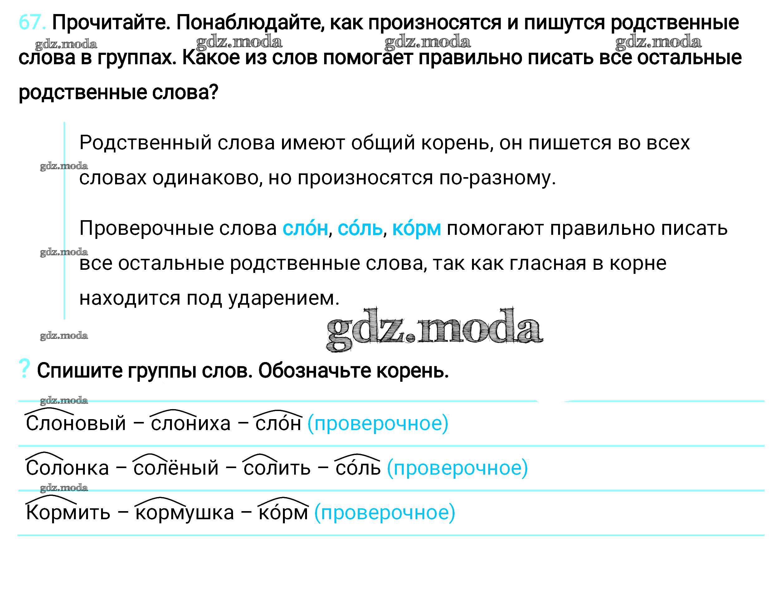 ОТВЕТ на задание № 67 Учебник по Русскому языку 2 класс Климанова Перспектива