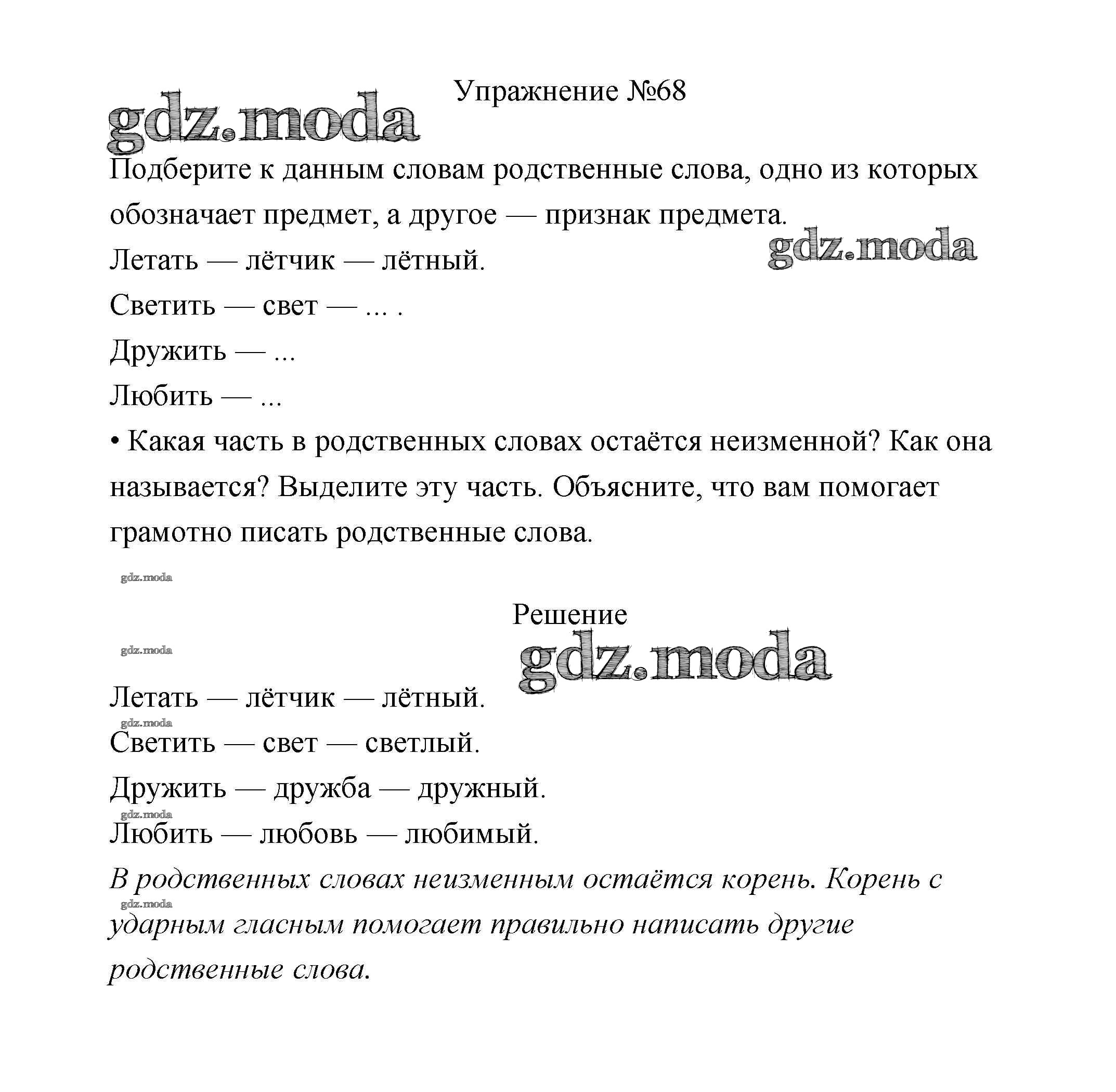ОТВЕТ на задание № 68 Учебник по Русскому языку 2 класс Климанова Перспектива