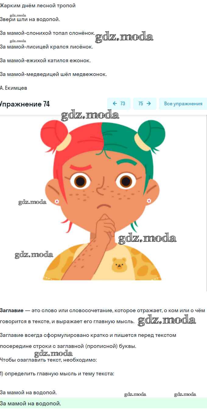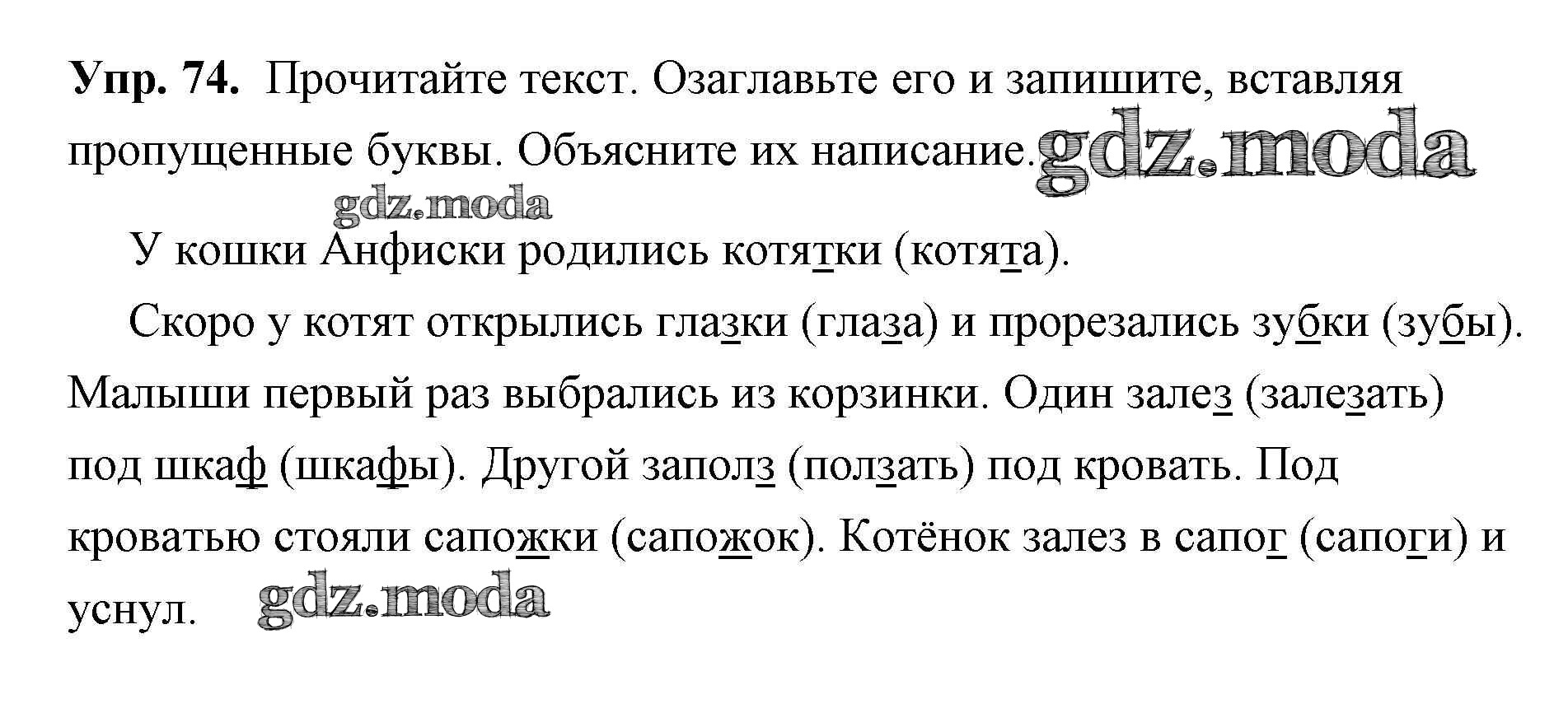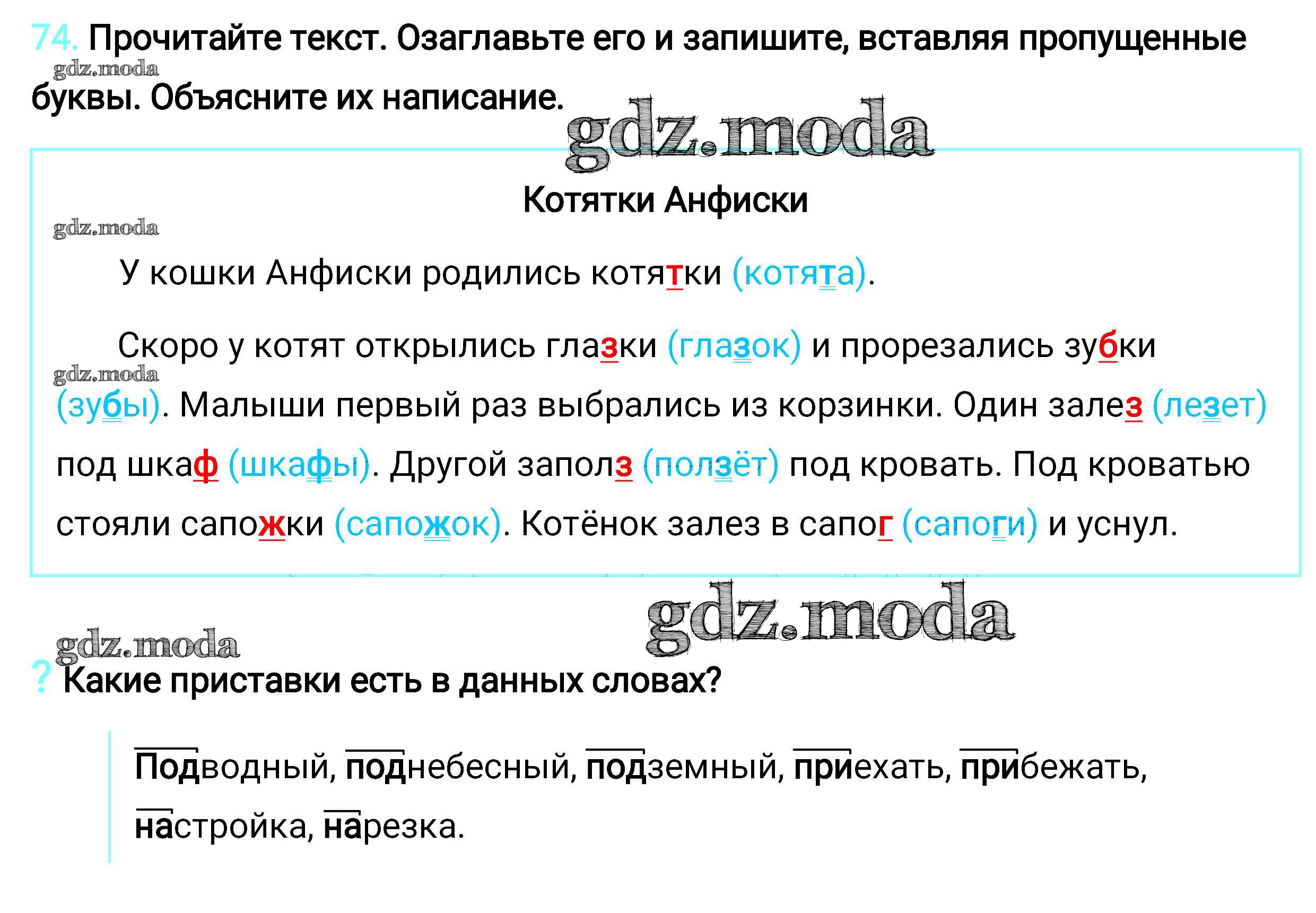 ОТВЕТ на задание № 74 Учебник по Русскому языку 2 класс Климанова Перспектива