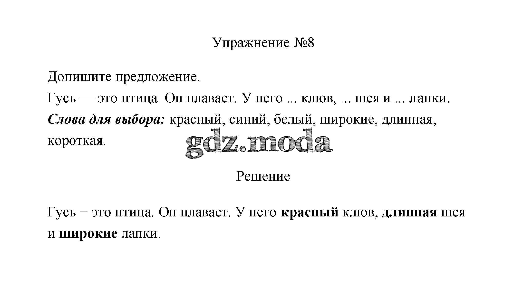 ОТВЕТ на задание № 8 Учебник по Русскому языку 2 класс Климанова Перспектива