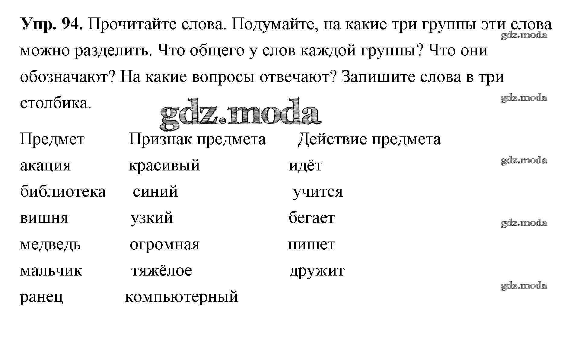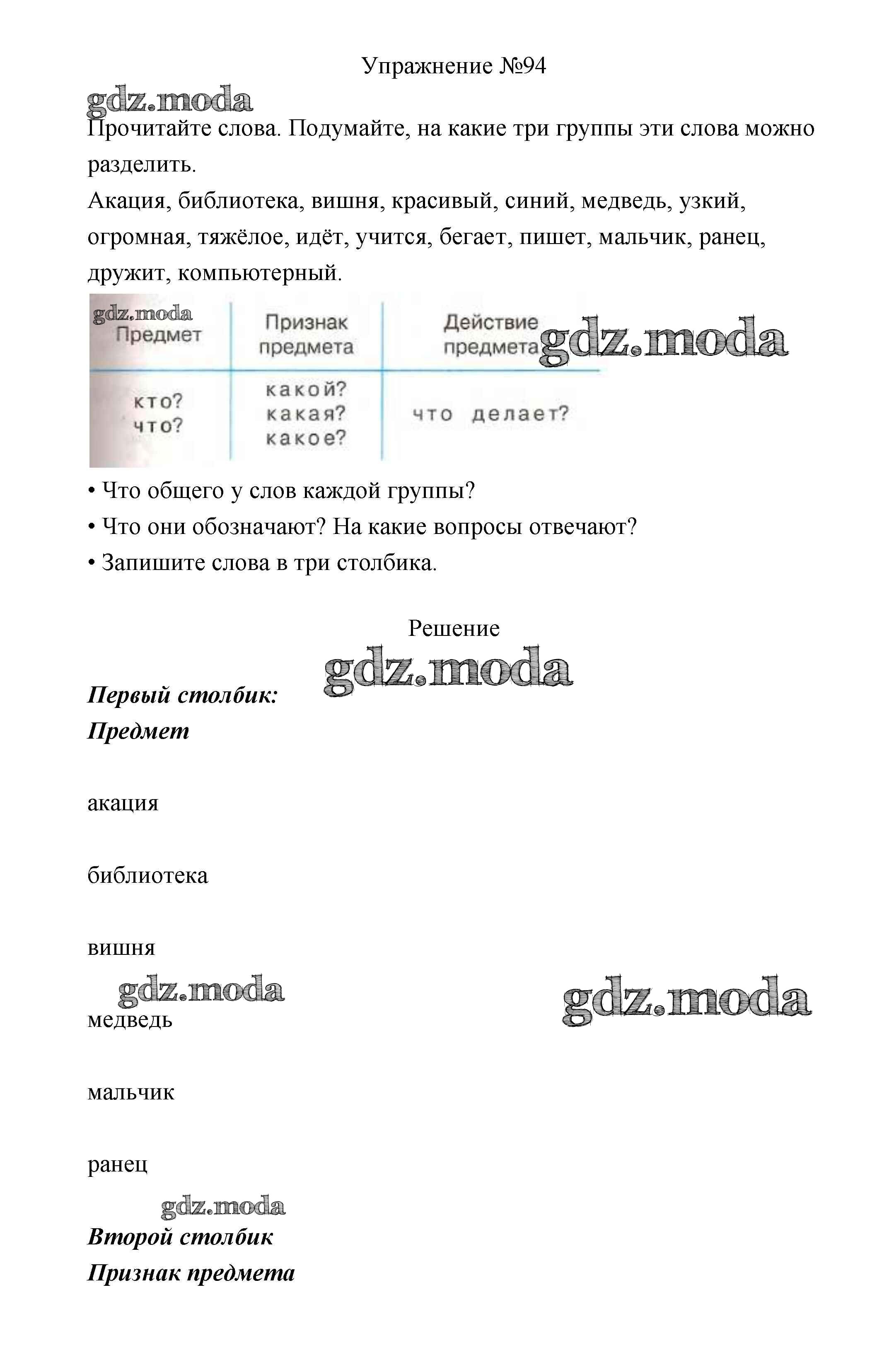 ОТВЕТ на задание № 94 Учебник по Русскому языку 2 класс Климанова Перспектива