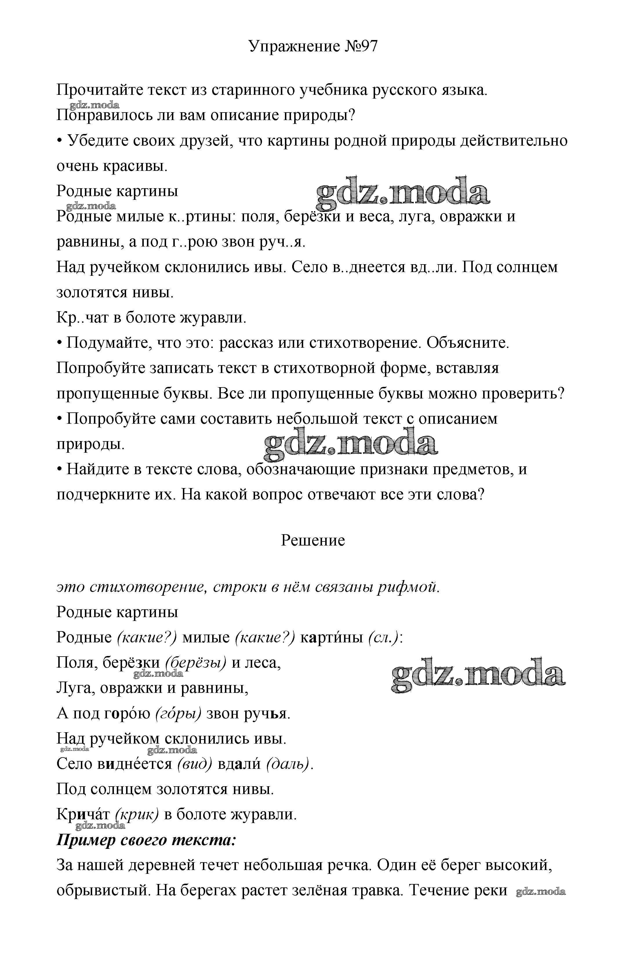 ОТВЕТ на задание № 97 Учебник по Русскому языку 2 класс Климанова Перспектива