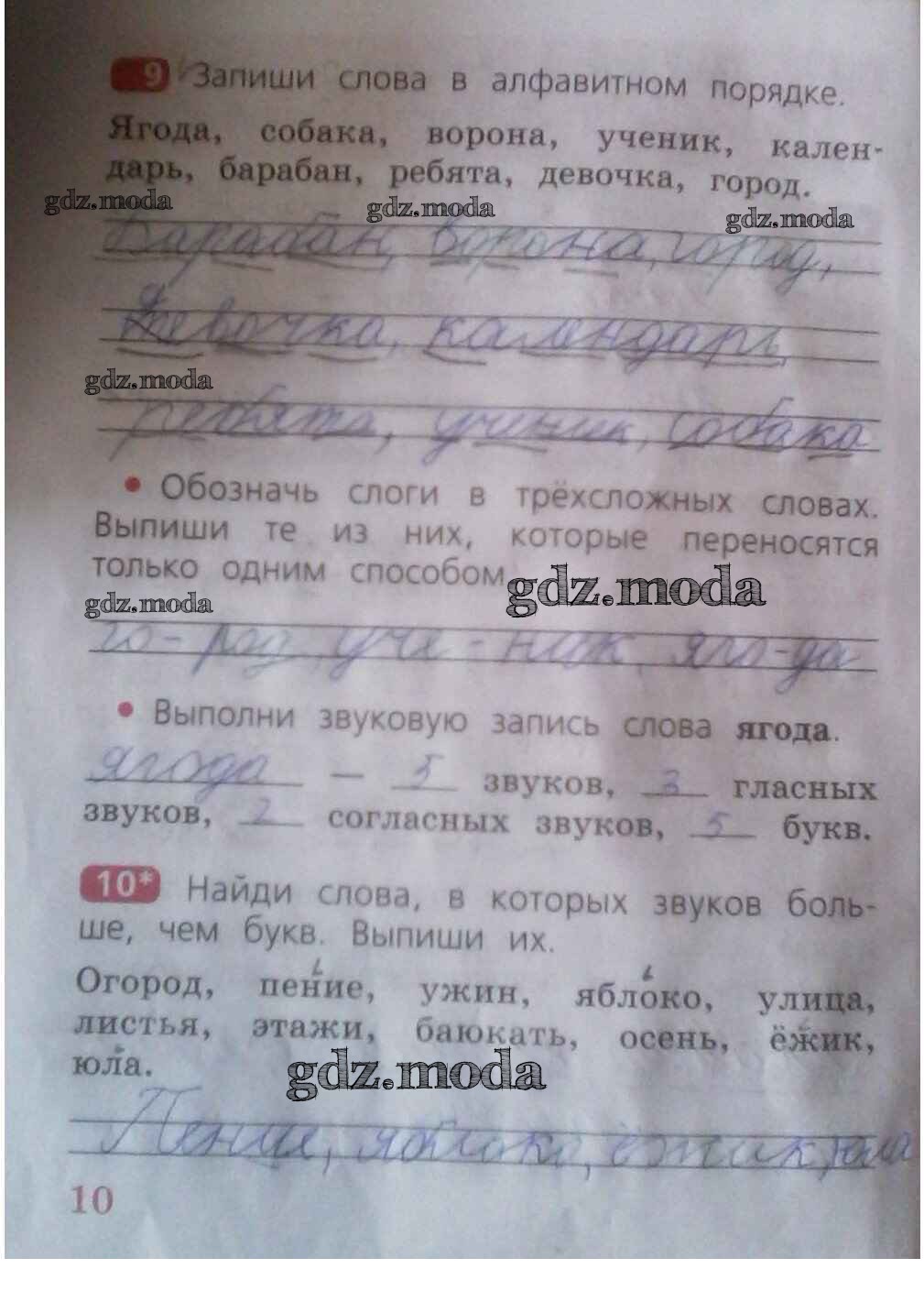 ГДЗ решение к заданию № 10 Русский язык 2 класс рабочая тетрадь Песняева Н.А. Просвещение 2020 Часть 1, Часть 2 ФГОС бесплатно на гдз.мода!