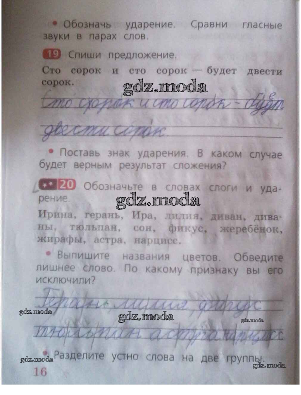ГДЗ решение к заданию № 16 Русский язык 2 класс рабочая тетрадь Песняева Н.А. Просвещение 2020 Часть 1, Часть 2 ФГОС бесплатно на гдз.мода!