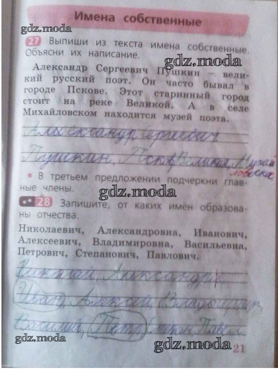 ГДЗ решение к заданию № 21 Русский язык 2 класс рабочая тетрадь Песняева Н.А. Просвещение 2020 Часть 1, Часть 2 ФГОС бесплатно на гдз.мода!