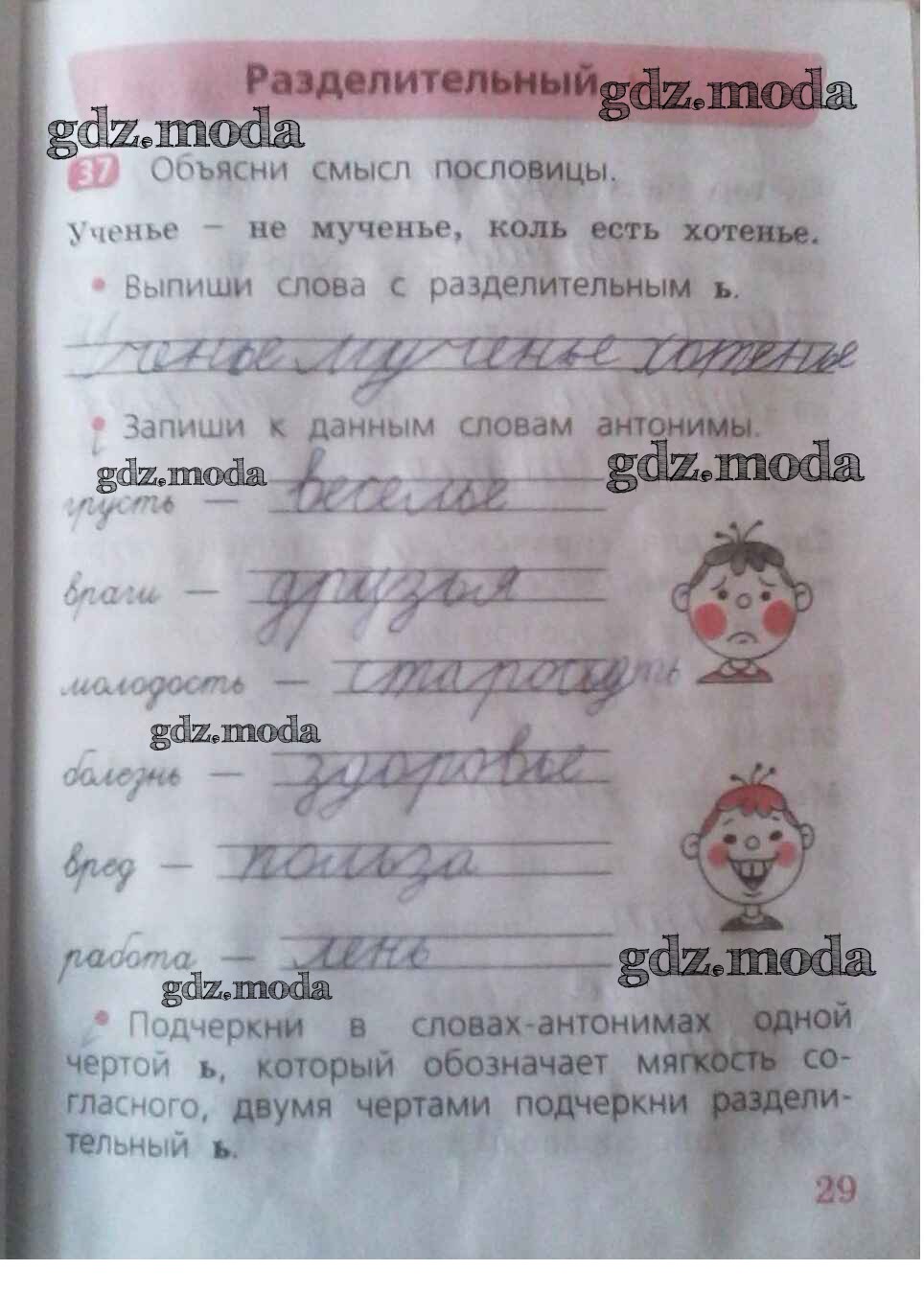 ГДЗ решение к заданию № 29 Русский язык 2 класс рабочая тетрадь Песняева Н.А. Просвещение 2020 Часть 1, Часть 2 ФГОС бесплатно на гдз.мода!