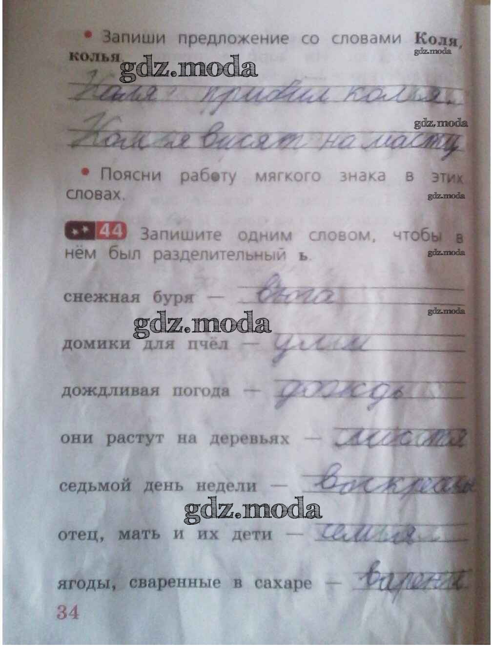 ГДЗ решение к заданию № 34 Русский язык 2 класс рабочая тетрадь Песняева Н.А. Просвещение 2020 Часть 1, Часть 2 ФГОС бесплатно на гдз.мода!