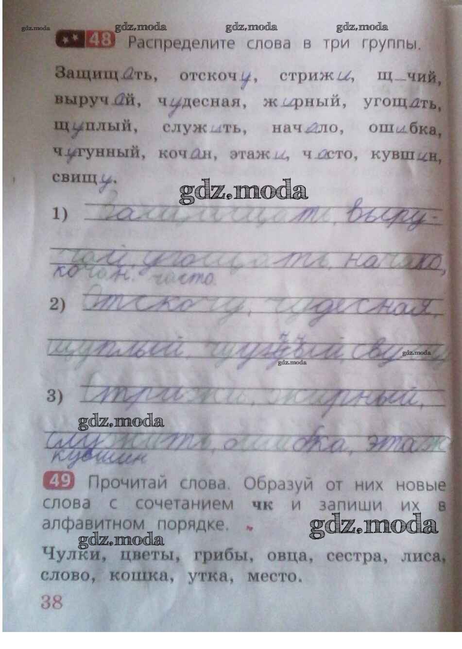 ГДЗ решение к заданию № 38 Русский язык 2 класс рабочая тетрадь Песняева Н.А. Просвещение 2020 Часть 1, Часть 2 ФГОС бесплатно на гдз.мода!