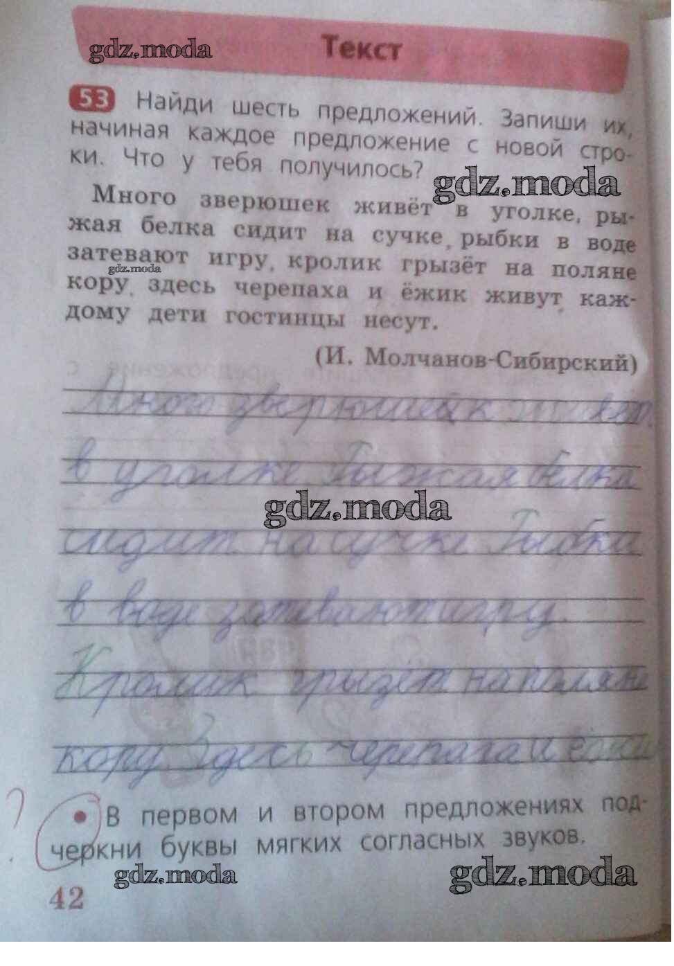 ГДЗ решение к заданию № 42 Русский язык 2 класс рабочая тетрадь Песняева Н.А. Просвещение 2020 Часть 1, Часть 2 ФГОС бесплатно на гдз.мода!