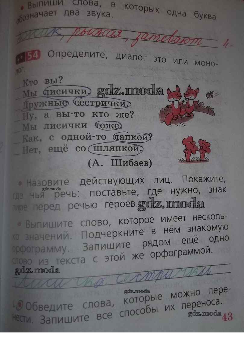 ГДЗ решение к заданию № 43 Русский язык 2 класс рабочая тетрадь Песняева Н.А. Просвещение 2020 Часть 1, Часть 2 ФГОС бесплатно на гдз.мода!