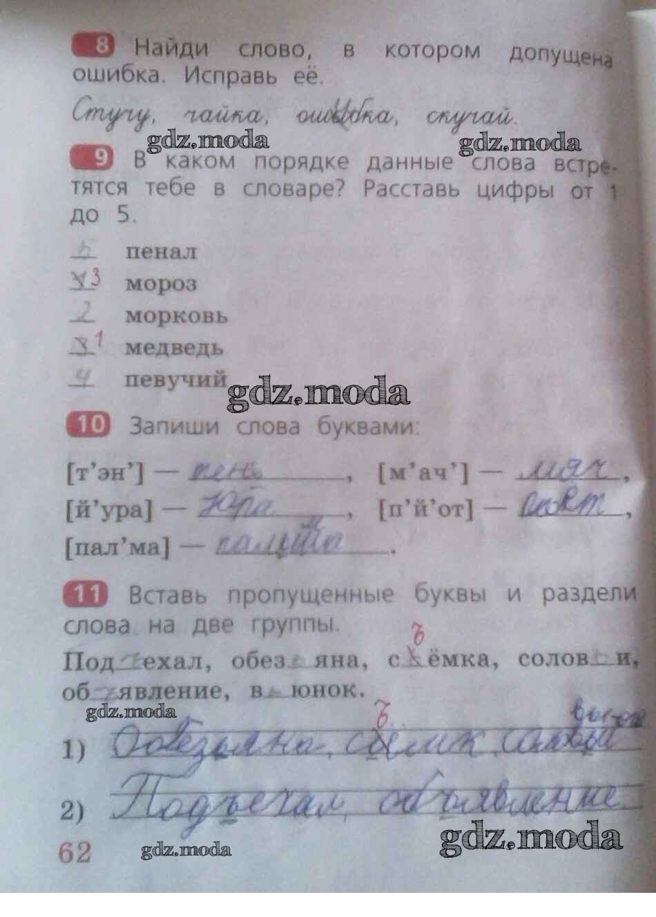 ГДЗ решение к заданию № 62 Русский язык 2 класс рабочая тетрадь Песняева Н.А. Просвещение 2020 Часть 1, Часть 2 ФГОС бесплатно на гдз.мода!