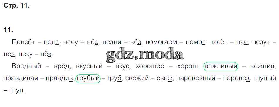 ГДЗ решение к заданию № 11 Русский язык 2 класс рабочая тетрадь Песняева Н.А. Просвещение 2020 Часть 1, Часть 2 ФГОС бесплатно на гдз.мода!