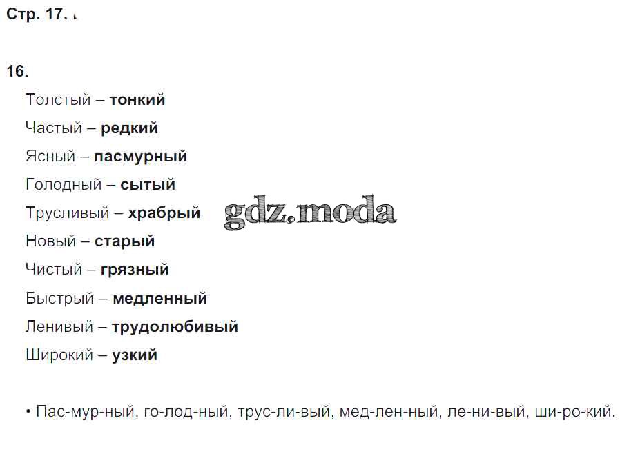 ГДЗ решение к заданию № 17 Русский язык 2 класс рабочая тетрадь Песняева Н.А. Просвещение 2020 Часть 1, Часть 2 ФГОС бесплатно на гдз.мода!