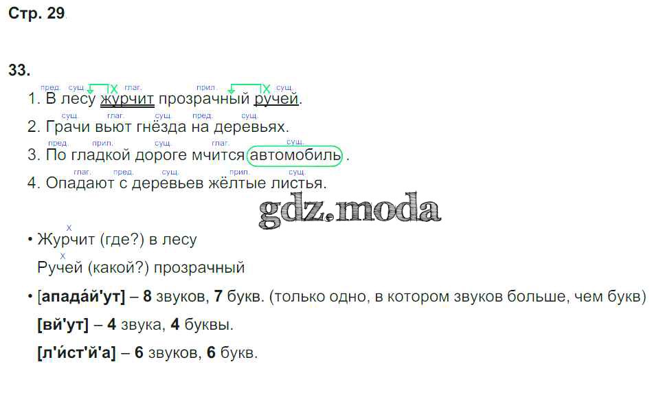 ГДЗ решение к заданию № 29 Русский язык 2 класс рабочая тетрадь Песняева Н.А. Просвещение 2020 Часть 1, Часть 2 ФГОС бесплатно на гдз.мода!
