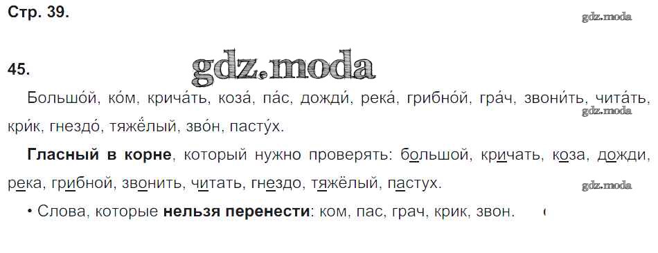 ГДЗ решение к заданию № 39 Русский язык 2 класс рабочая тетрадь Песняева Н.А. Просвещение 2020 Часть 1, Часть 2 ФГОС бесплатно на гдз.мода!