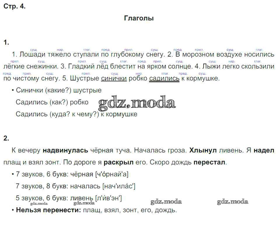 ГДЗ решение к заданию № 4 Русский язык 2 класс рабочая тетрадь Песняева Н.А. Просвещение 2020 Часть 1, Часть 2 ФГОС бесплатно на гдз.мода!