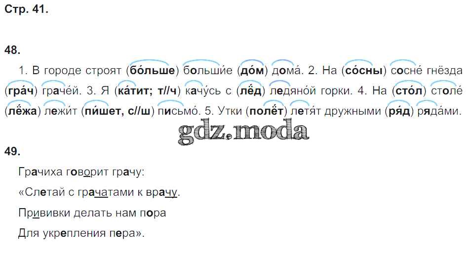 ГДЗ решение к заданию № 41 Русский язык 2 класс рабочая тетрадь Песняева Н.А. Просвещение 2020 Часть 1, Часть 2 ФГОС бесплатно на гдз.мода!