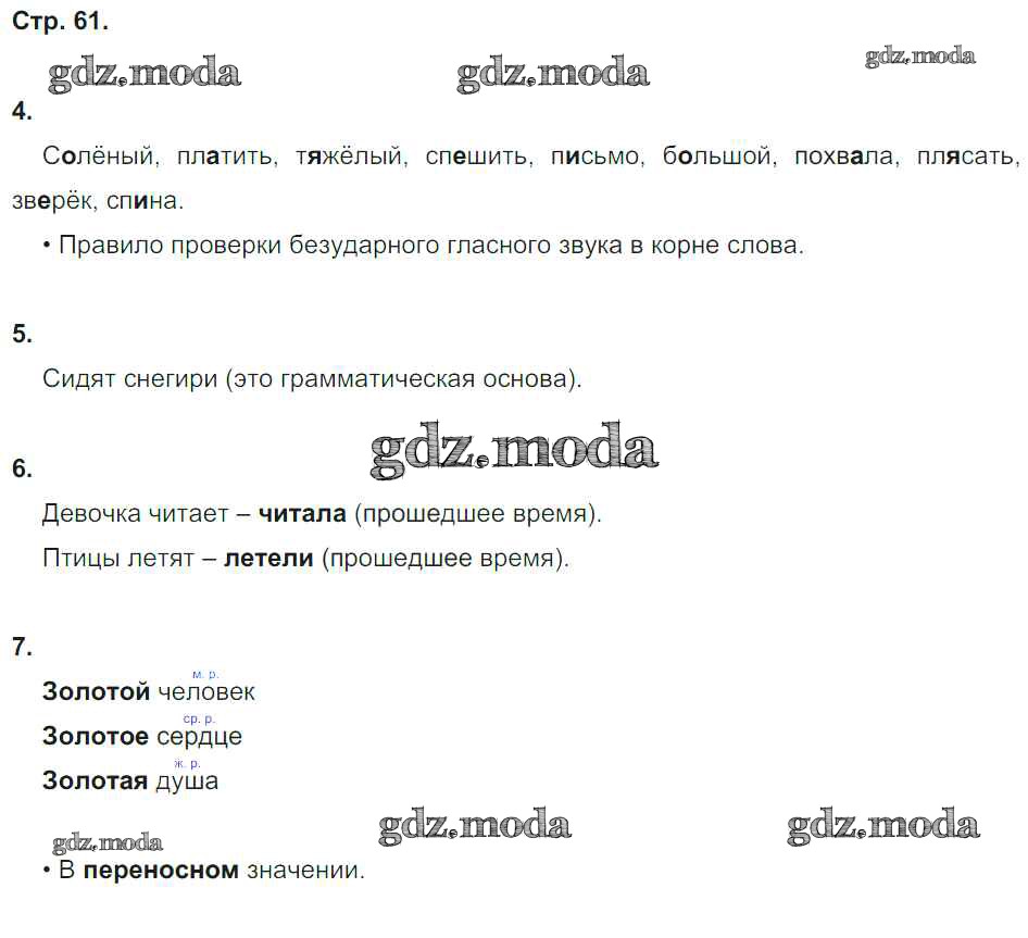 ГДЗ решение к заданию № 61 Русский язык 2 класс рабочая тетрадь Песняева Н.А. Просвещение 2020 Часть 1, Часть 2 ФГОС бесплатно на гдз.мода!