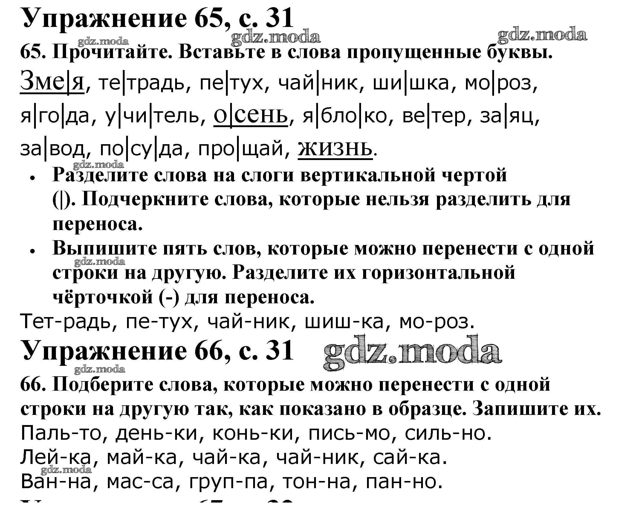 ОТВЕТ на задание № 31 Рабочая тетрадь по Русскому языку 2 класс Канакина Школа России